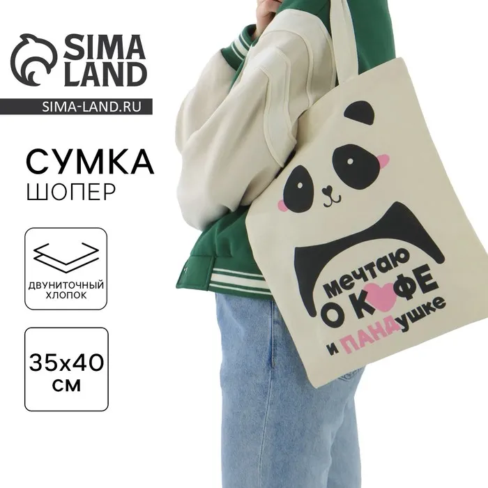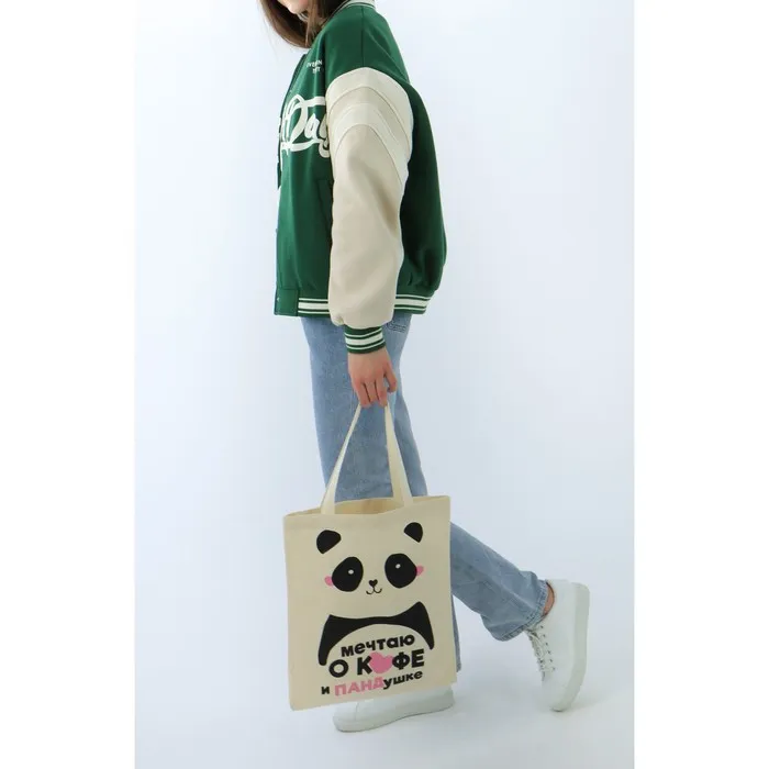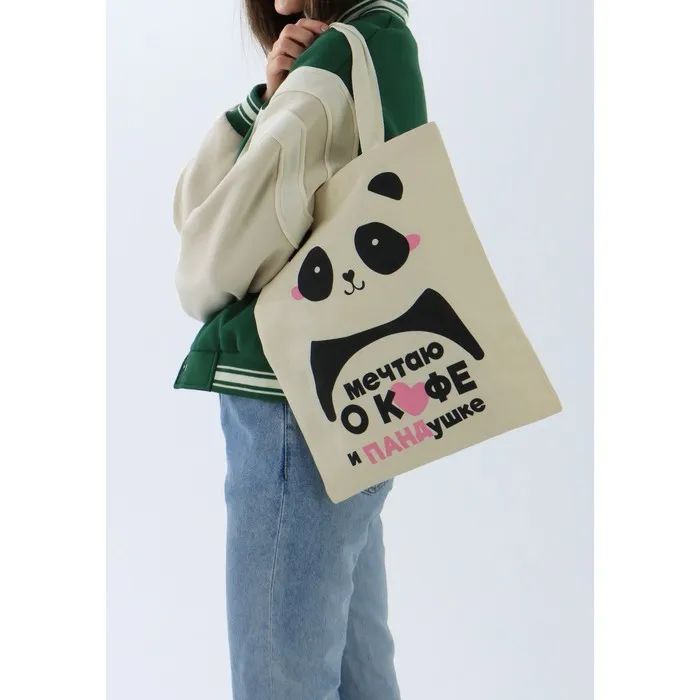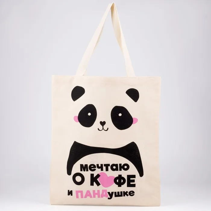 Сумка шопер «Панда» без молнии, без подкладки, бежевая — Характеристики