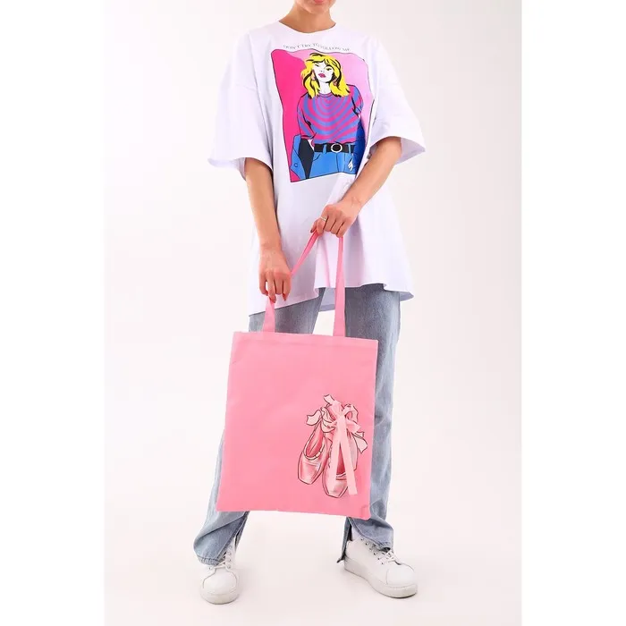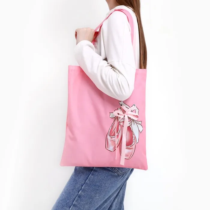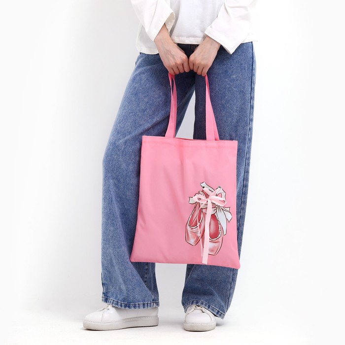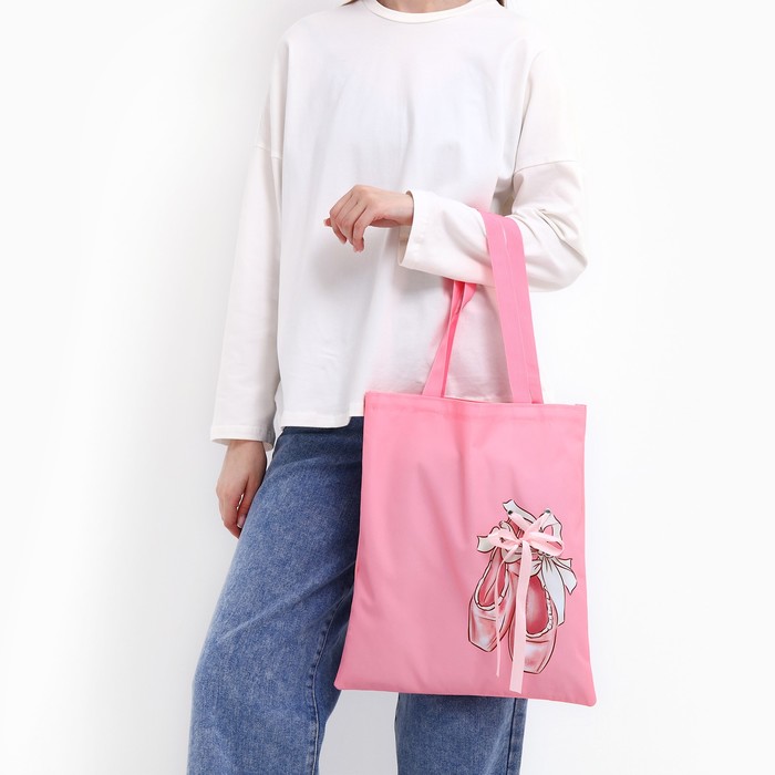 Сумка шопер «Пуанты», 35×0.5×40 см, с лентой, розовый — Характеристики