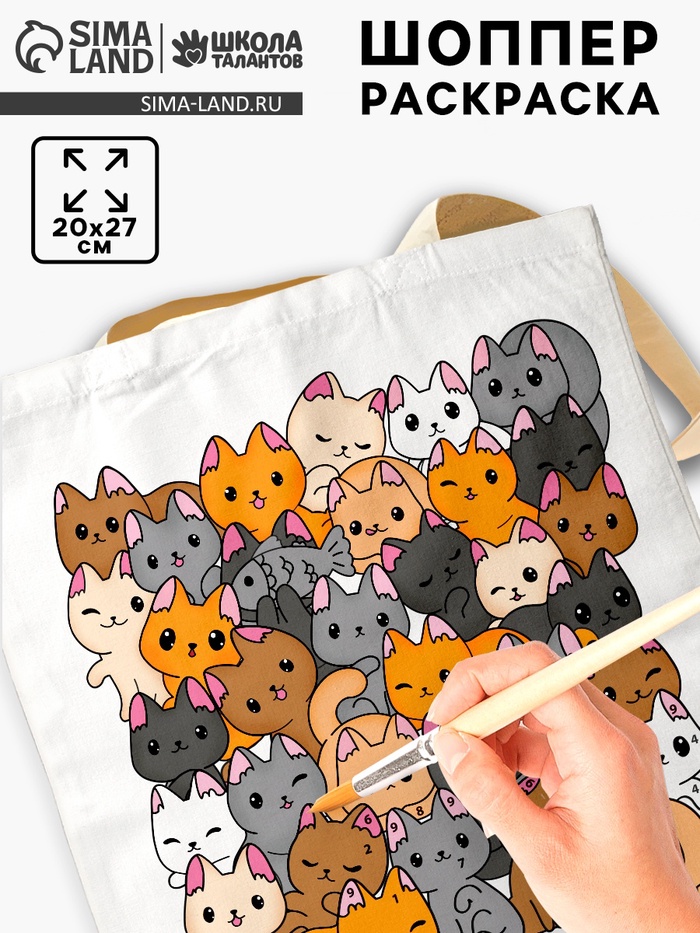 Сумка-шопер, раскраска по номерам «Котики» — Характеристики