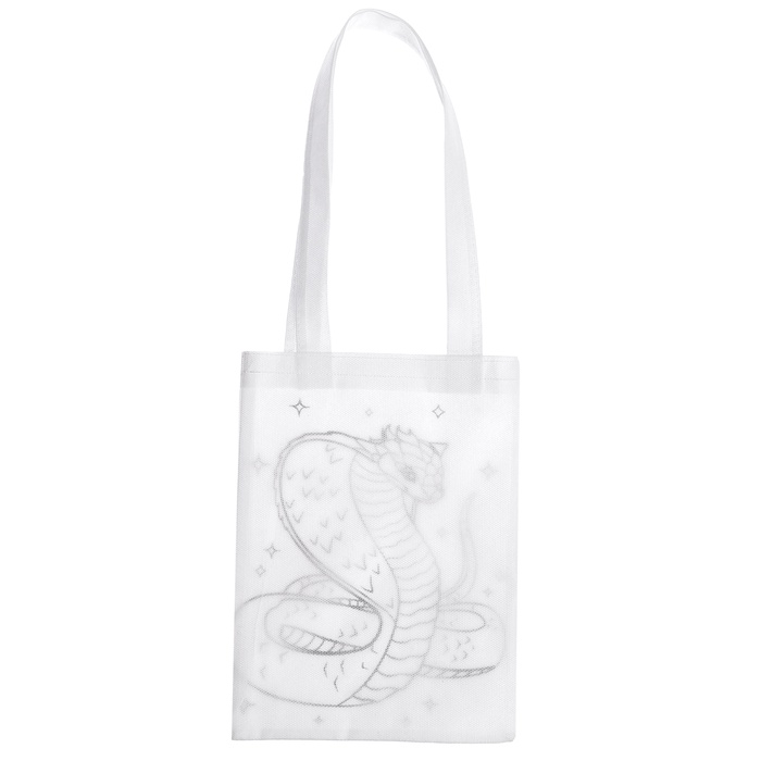 Сумка изготовлена из прочного нетканого материала, на котором легко рисовать акриловыми красками и маркерами. А новогодняя змейка станет вдохновением для создания ярких и оригинальных рисунков.