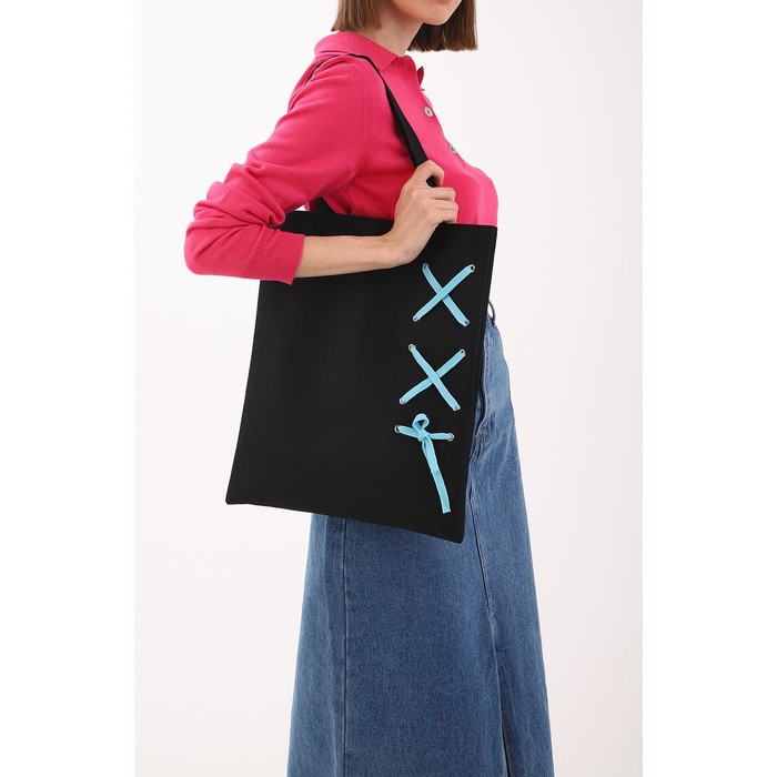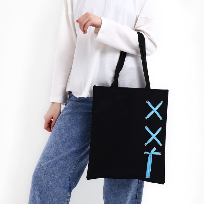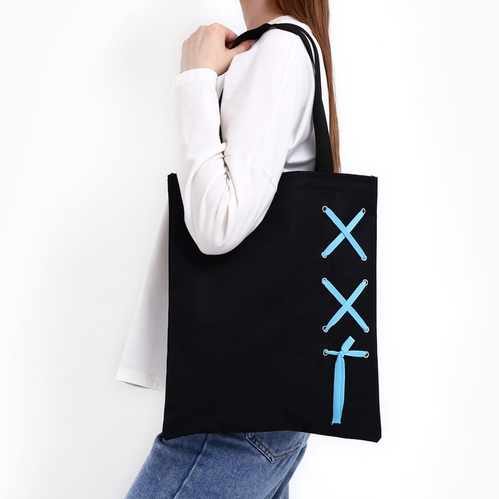 Сумка шопер с лентой, 35×1×40 см, чёрные — Характеристики