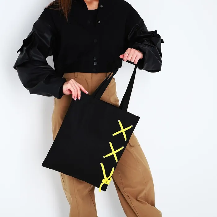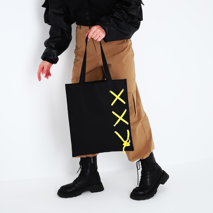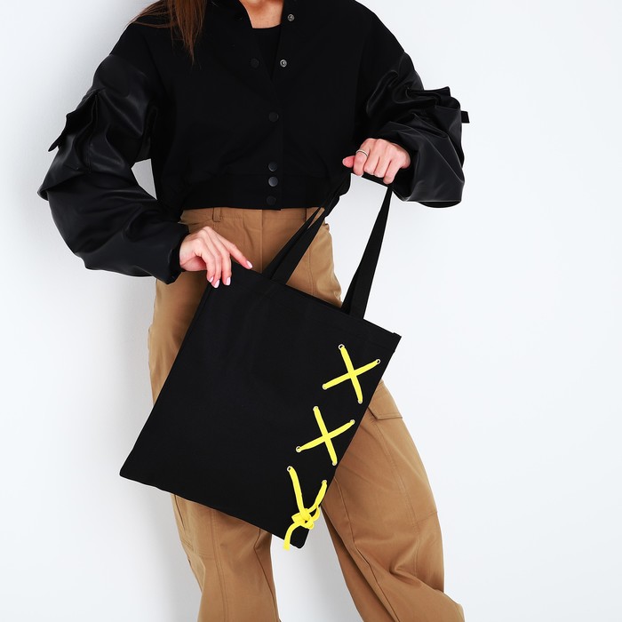 Сумка шопер с лентой, 35×1×40 см, чёрный — Характеристики