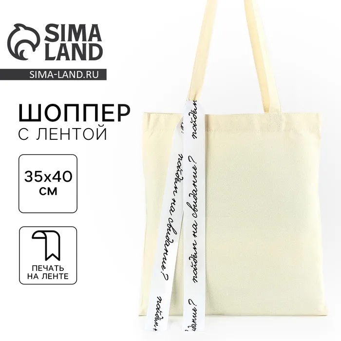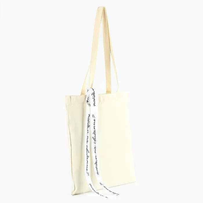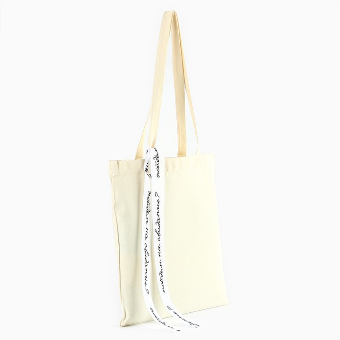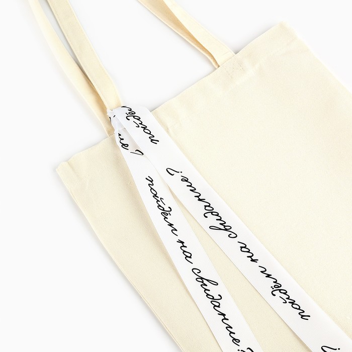 Сумка шопер с лентой «Пойдем на свидание», 35×0.5×40 см, бежевый — Характеристики
