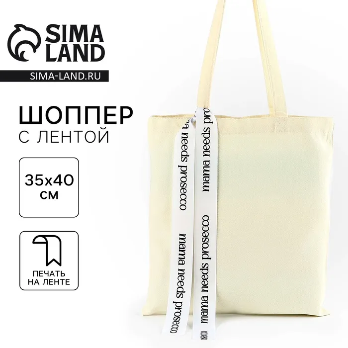 Сумка шопер с лентой Prosecco, 35×0.5×40 см, бежевые — Характеристики