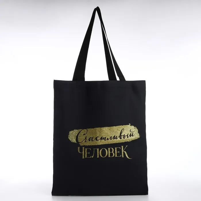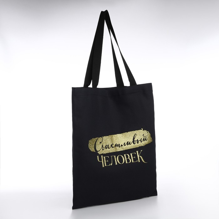Сумка шопер «Счастливый человек», 35×0.5×40, без подклада, чёрный — Характеристики
