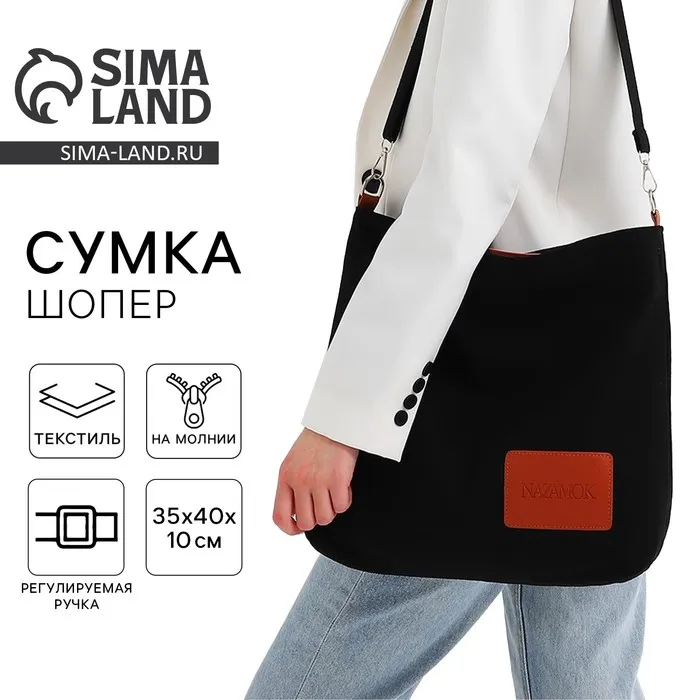 Сумка шопер текстильный NK, 40×35×10 см, отдел на молнии, чёрная — Характеристики