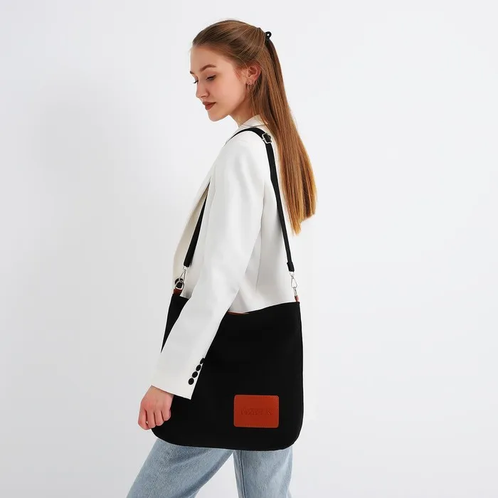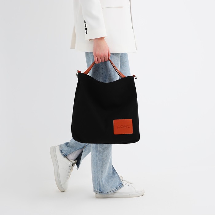 Сумка шопер текстильный NK, 40×35×10 см, отдел на молнии, чёрная