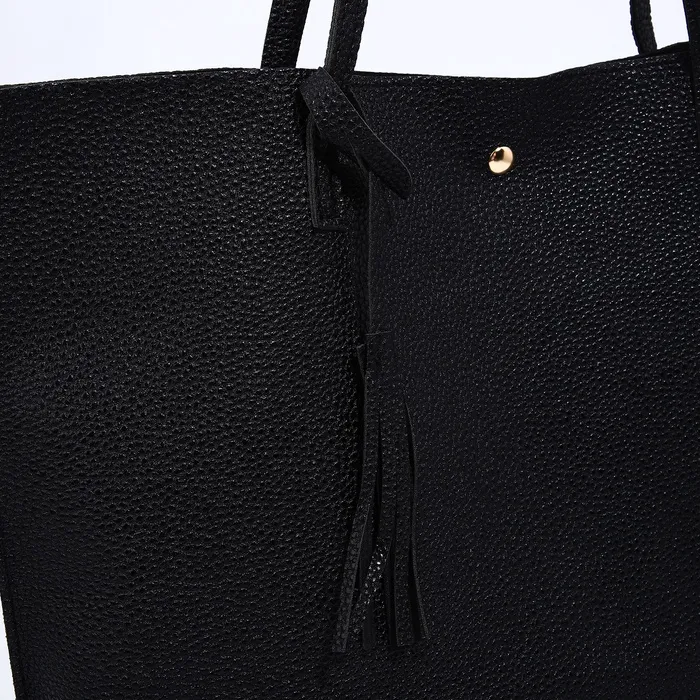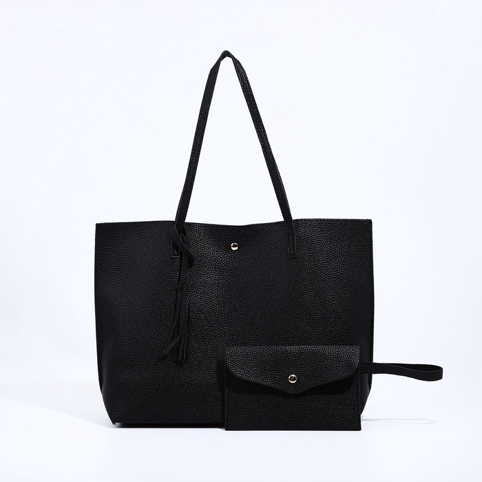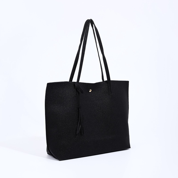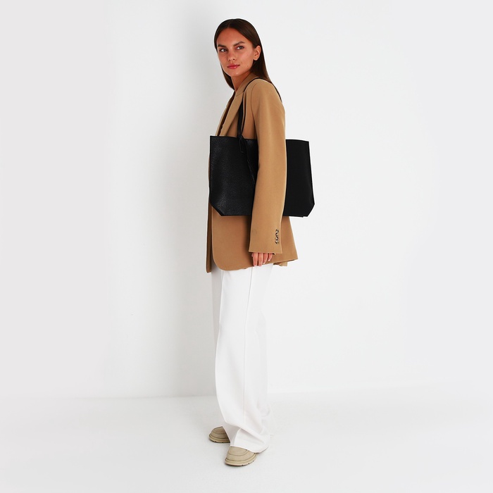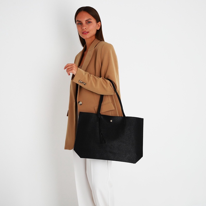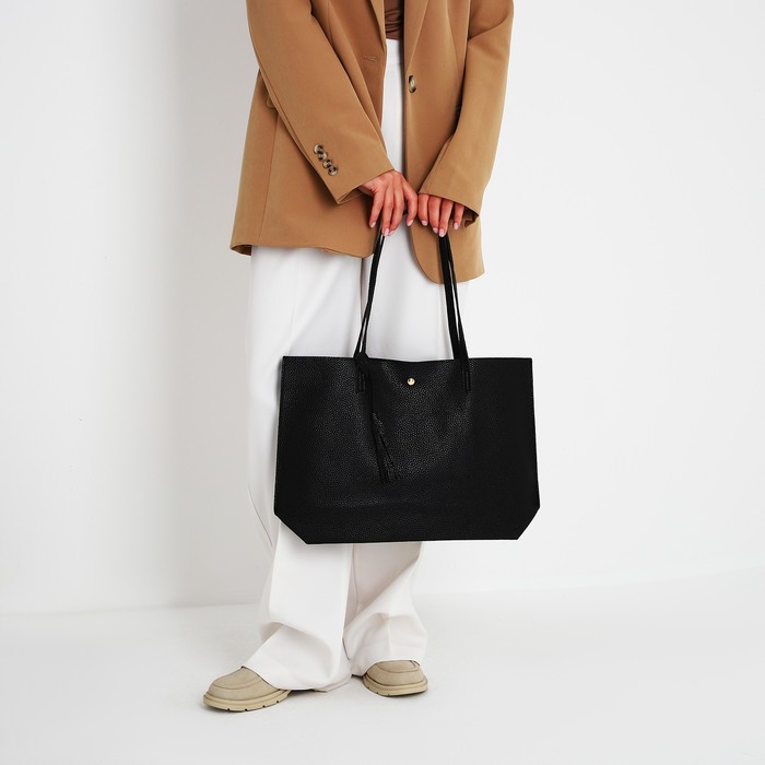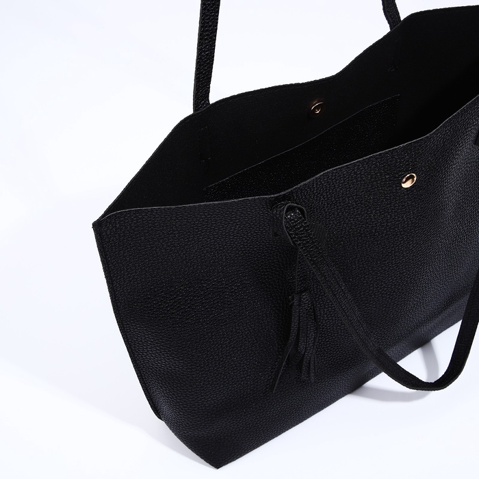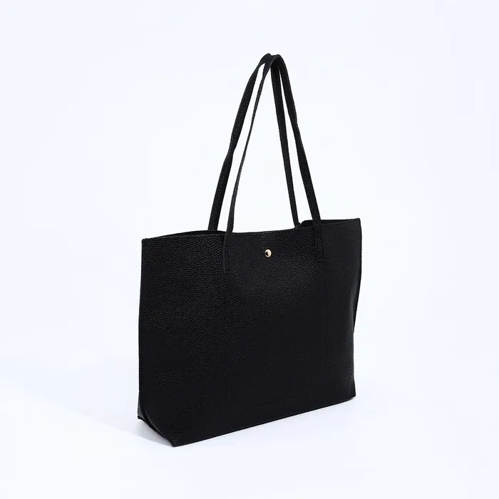 Сумка-шопер женская на кнопке, с монетницей, размер 35×10×28 см, чёрная — Характеристики