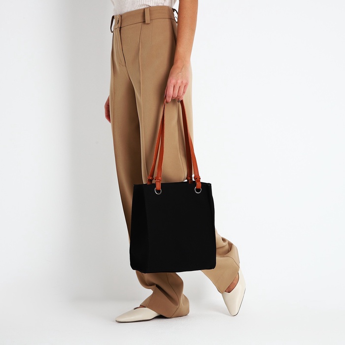 Сумка-шопер женская на молнии, размер 25×9.5×28 см, чёрная — Характеристики