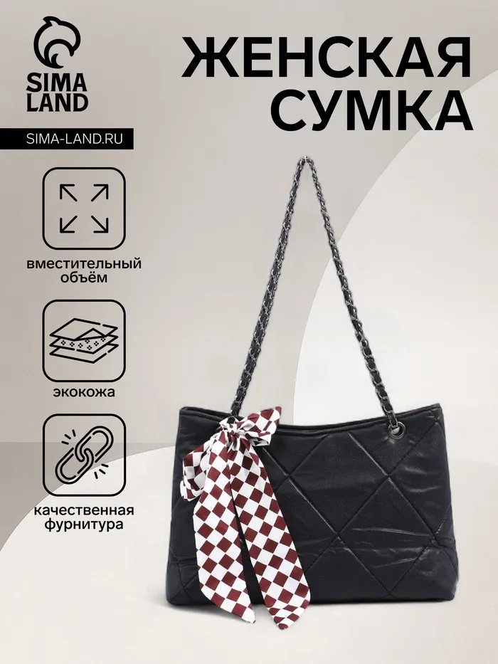 Сумка-шопер женская на молнии, размер 29×8×20 см, чёрная — Характеристики