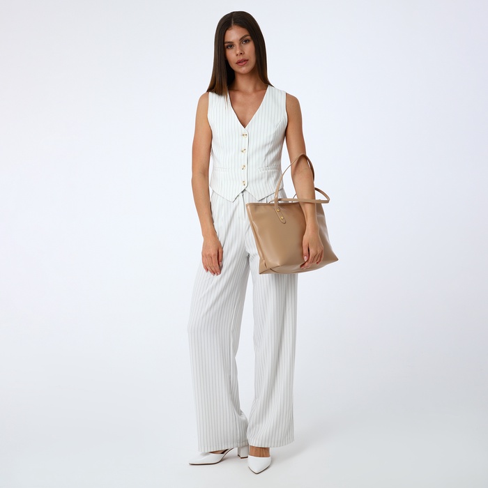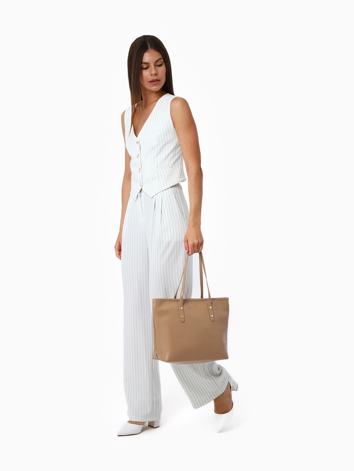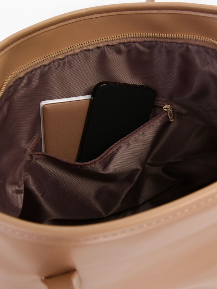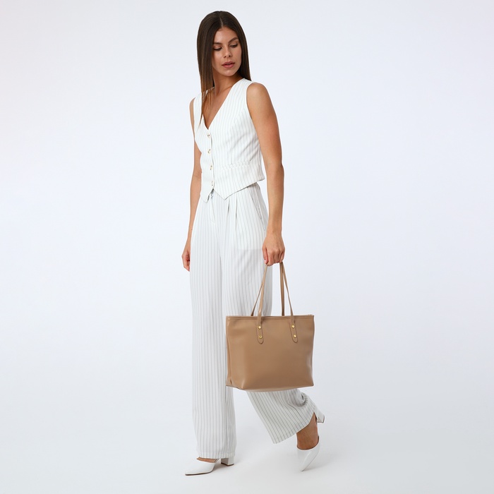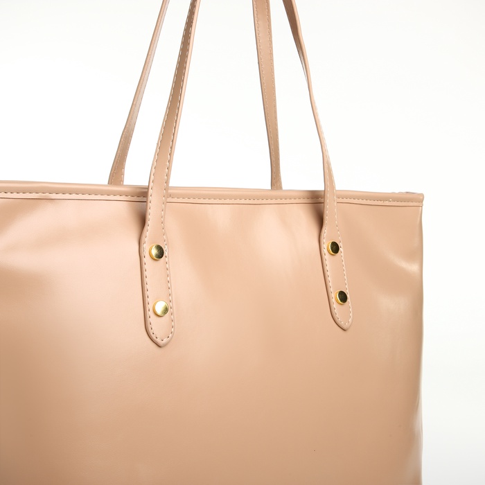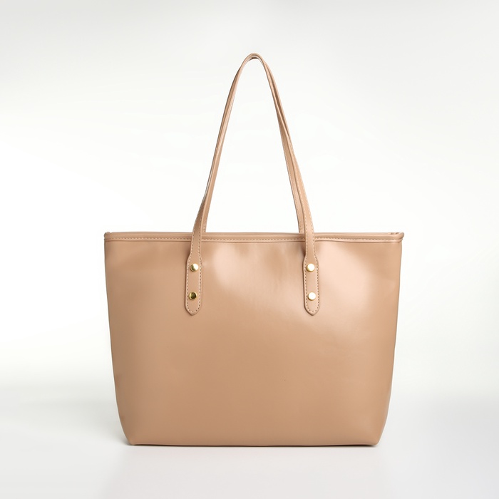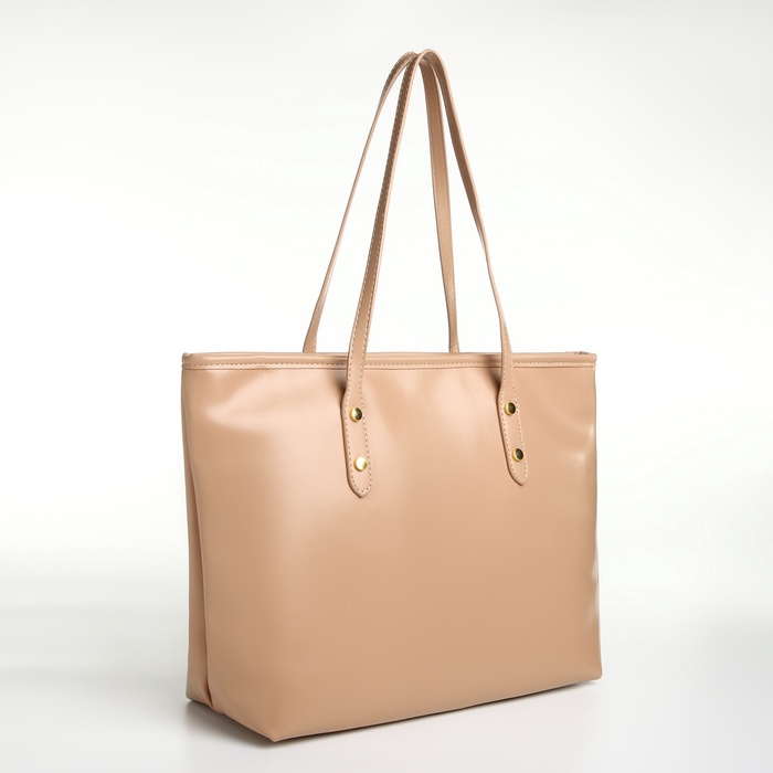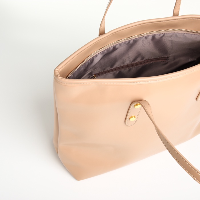 Сумка-шопер женская на молнии, размер 30.5×12×27 см, однотонная, бежевая — Характеристики