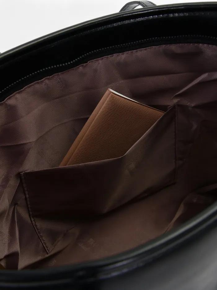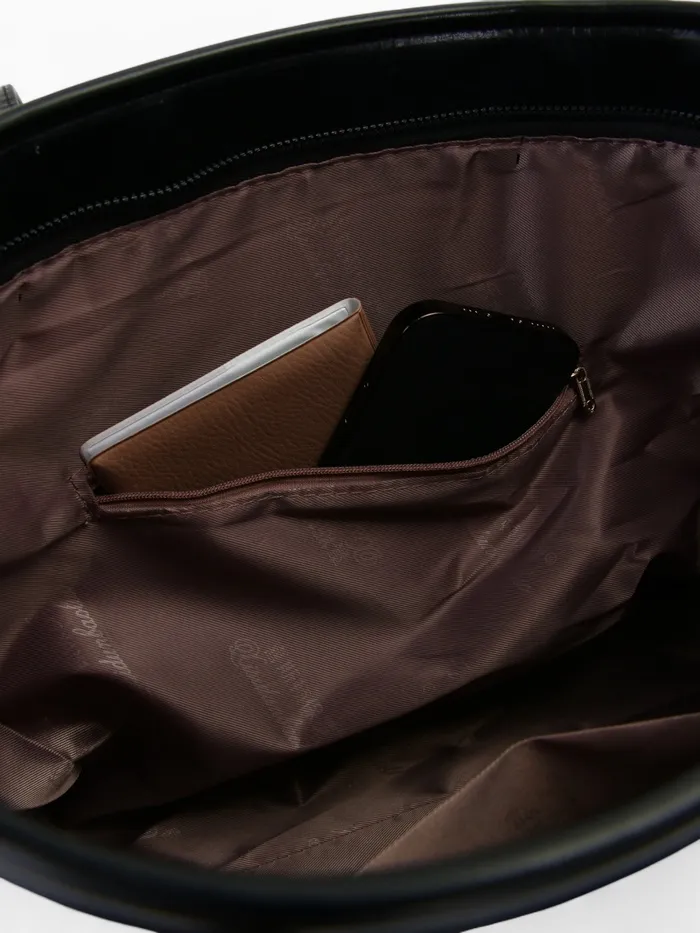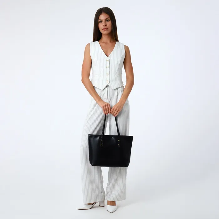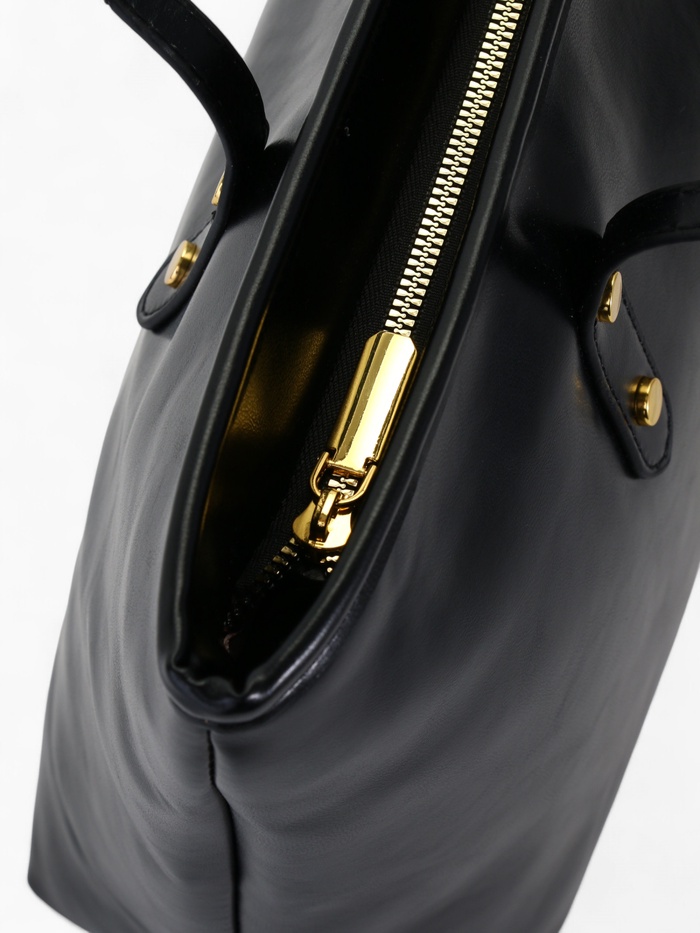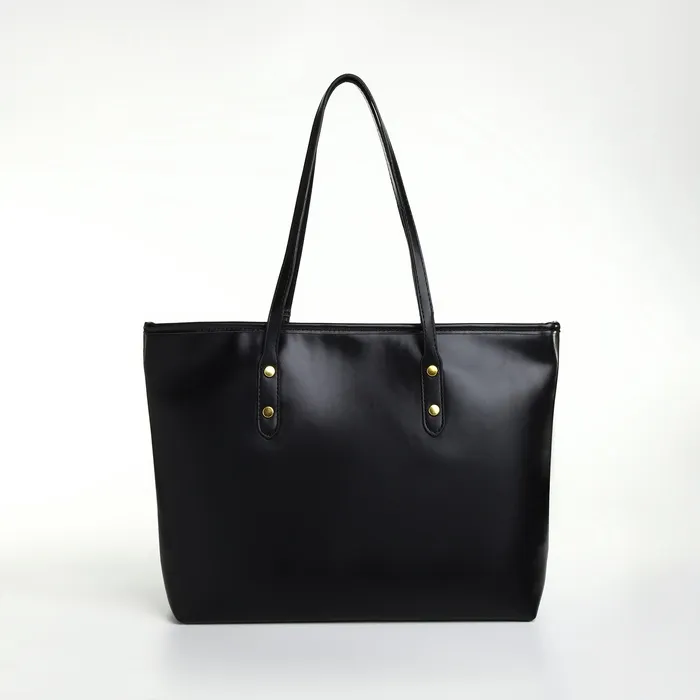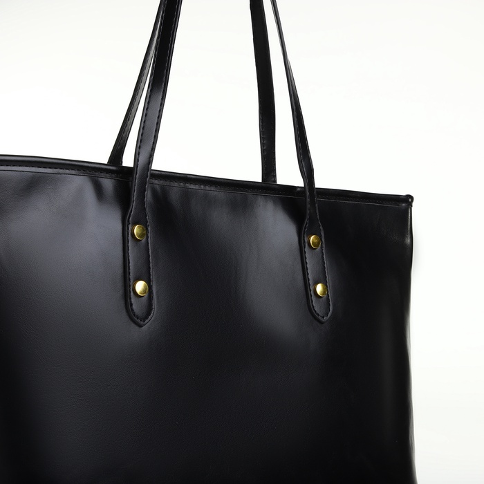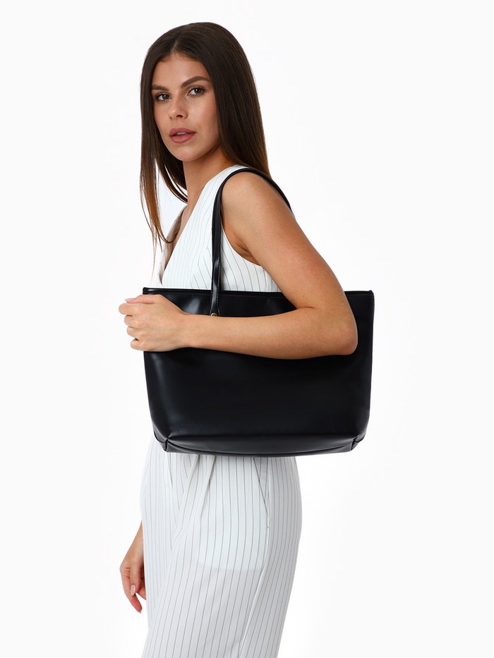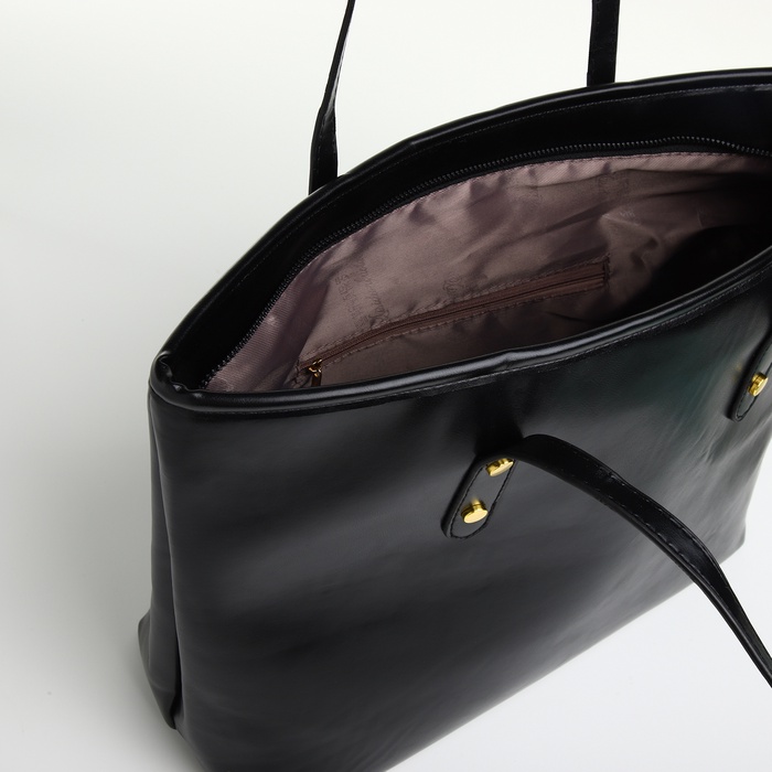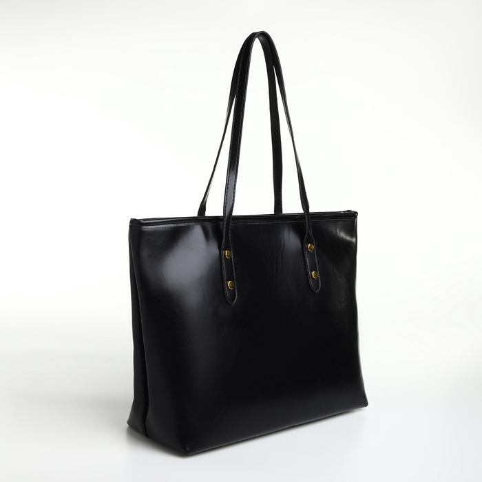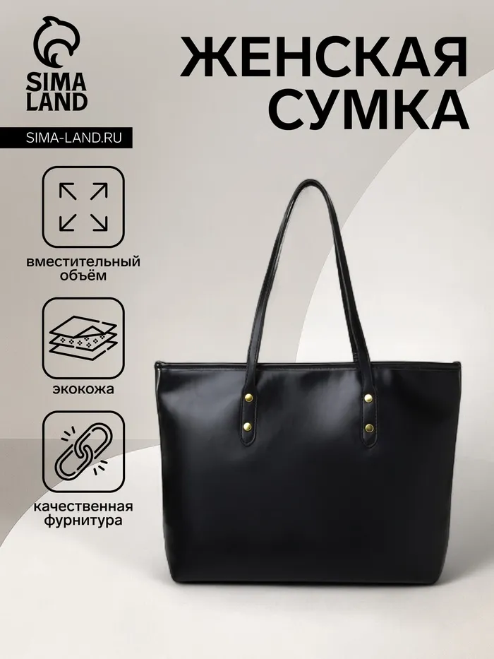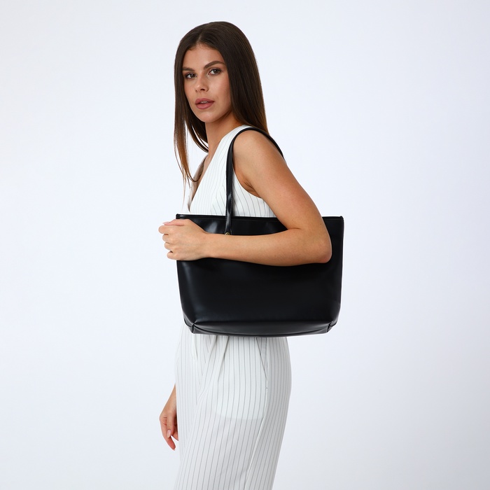 Сумка-шопер женская на молнии, размер 30.5×12×27 см, однотонная, чёрная — Характеристики
