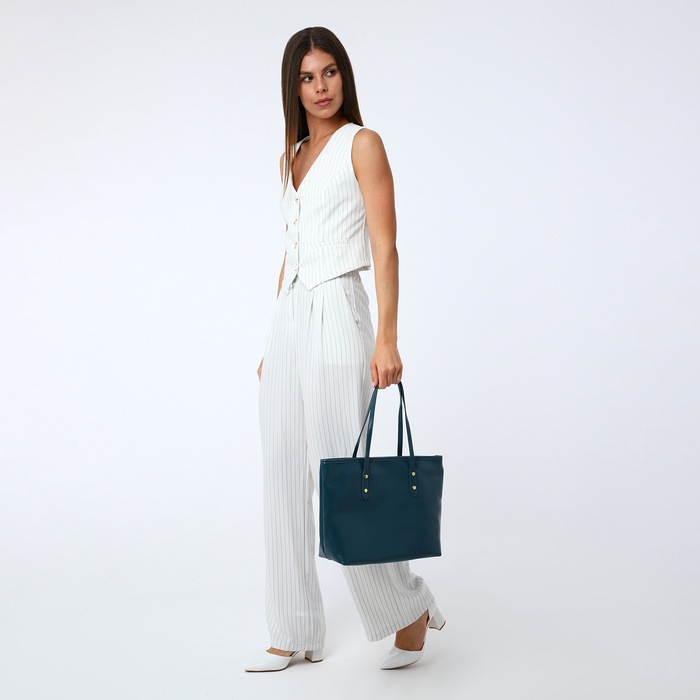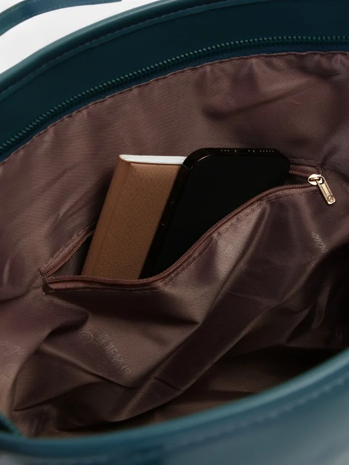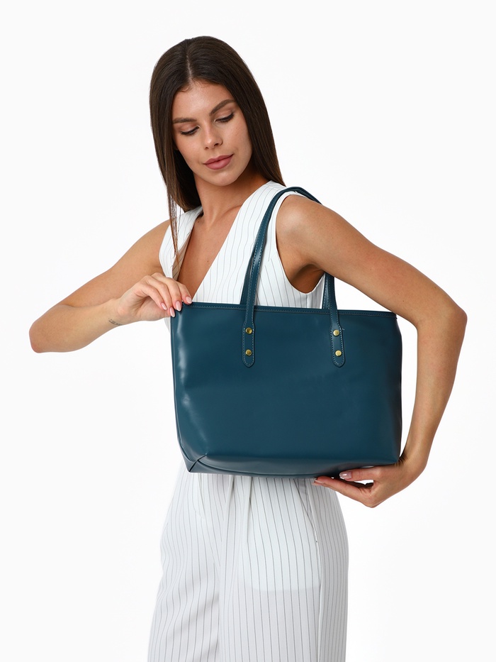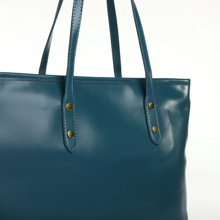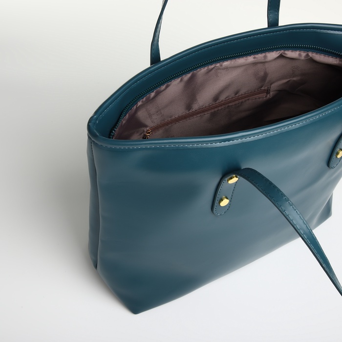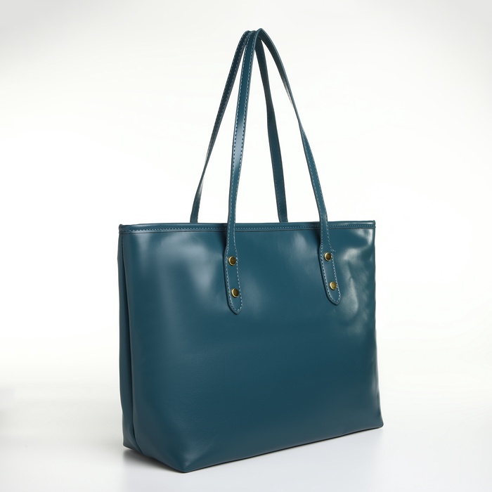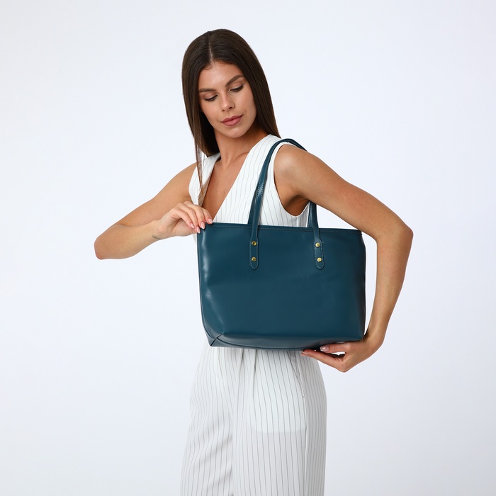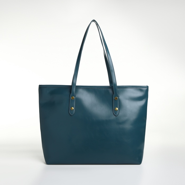 Сумка-шопер женская на молнии, размер 30.5×12×27 см, однотонная, синяя — Характеристики