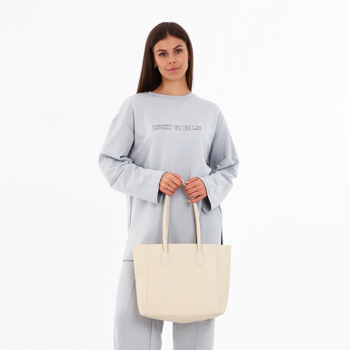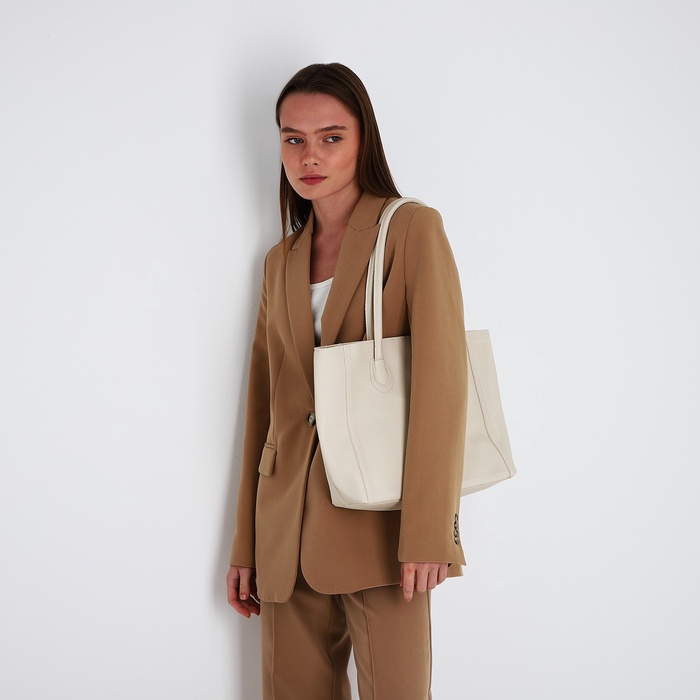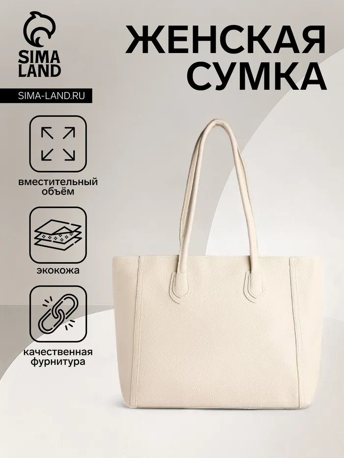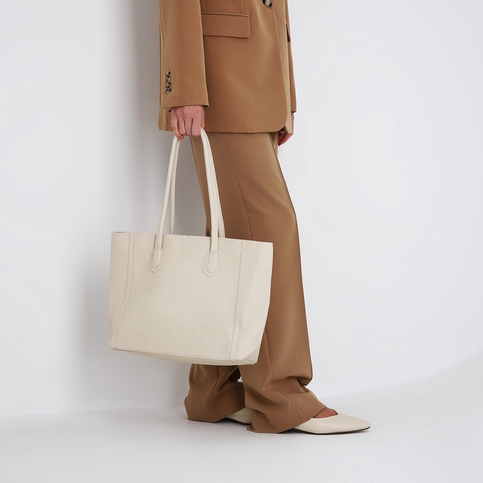 Сумка-шопер женская на молнии, размер 33×12×28 см, однотонная, молочная — Характеристики