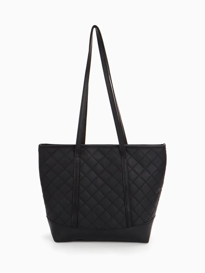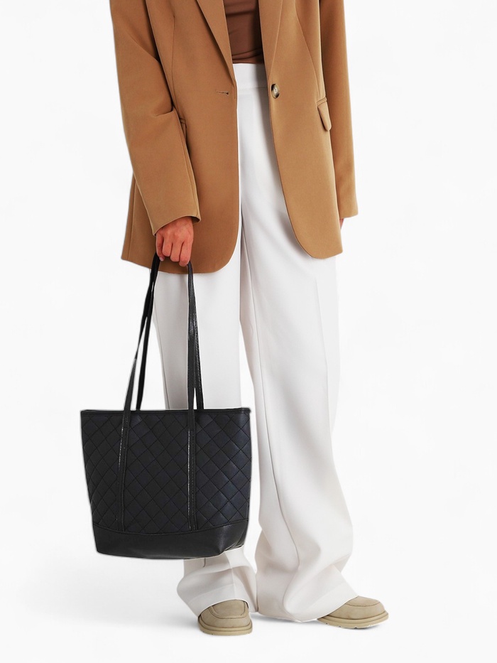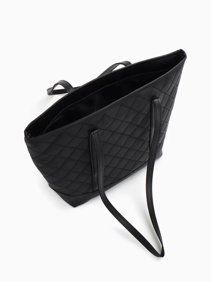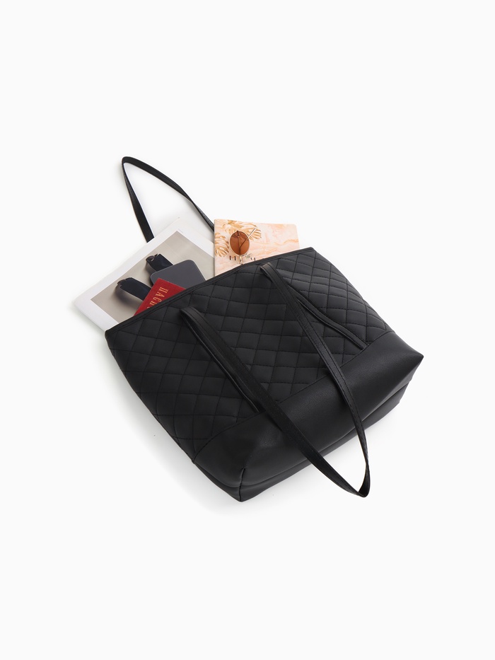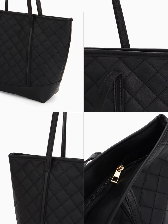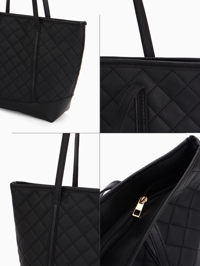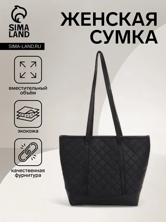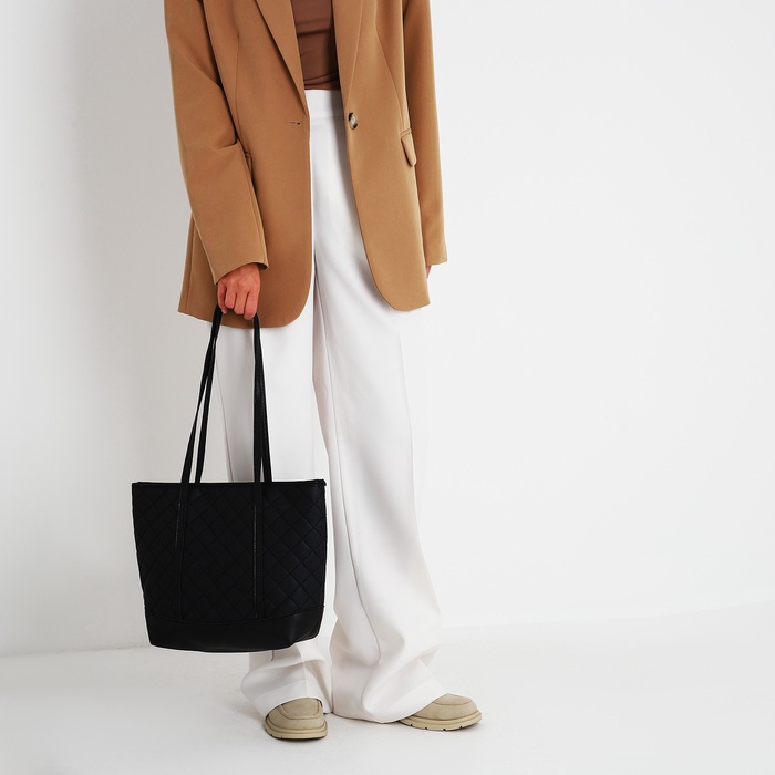 Сумка-шопер женская на молнии, размер 35×12×27 см, со стёжкой, чёрная — Характеристики
