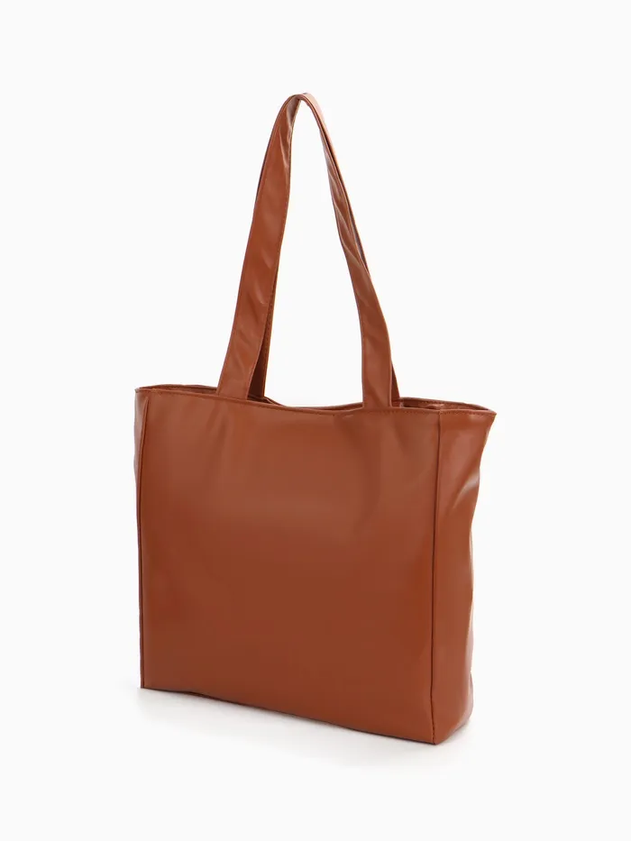 Сумка-шопер женская на молнии, размер 39×9×30 см, однотонная, рыжая — Характеристики