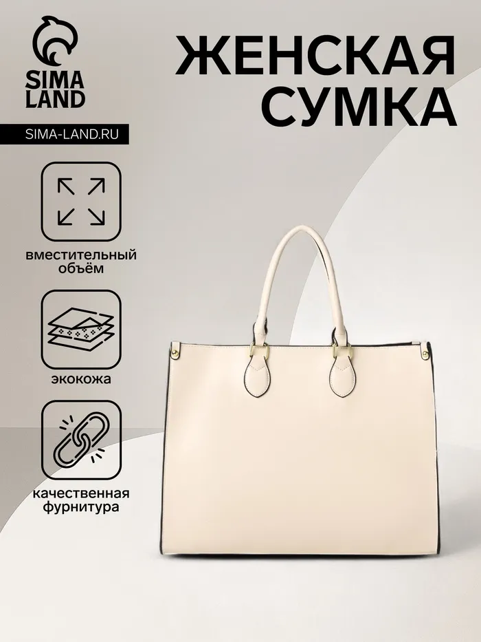Сумка-шопер женская на молнии, размер 41.5×17×31 см, молочная — Характеристики