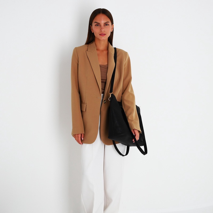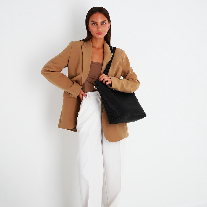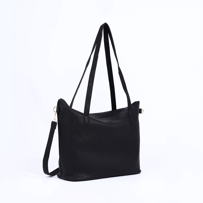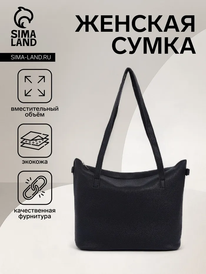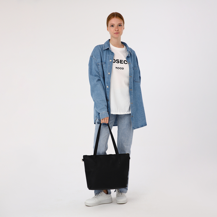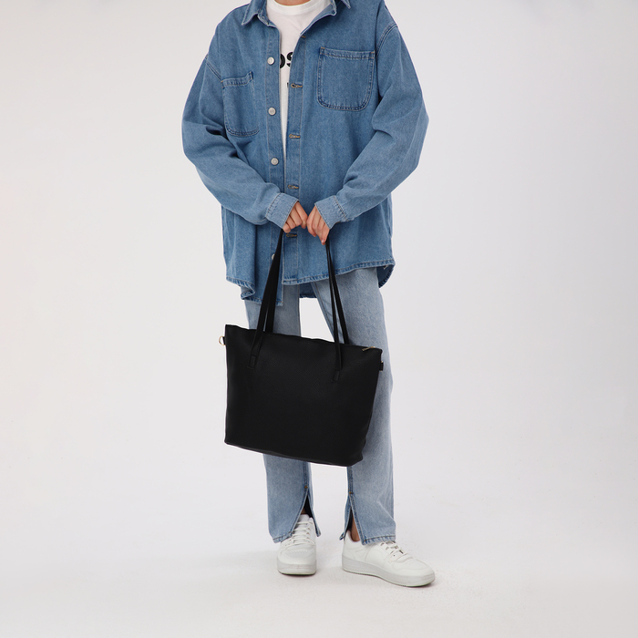 Сумка-шопер женская на молнии, размер 43×13×30 см, однотонная, чёрный — Характеристики