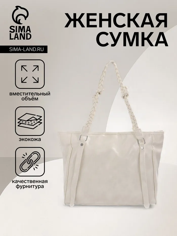 Сумка-шопер женская на молнии, размер 44×10×29 см, однотонная, белая — Характеристики