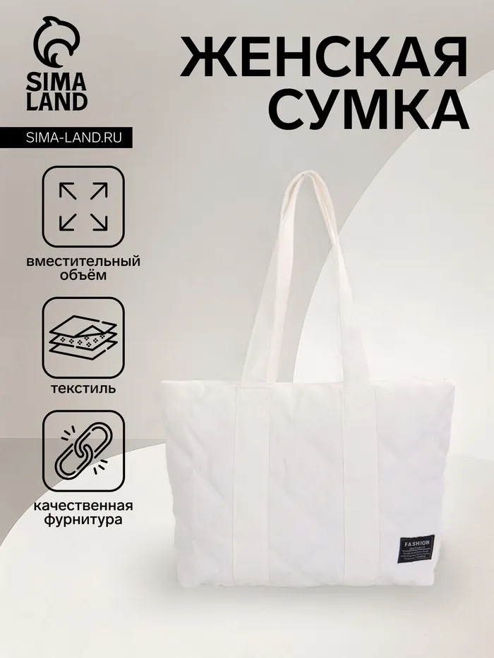 Сумка-шопер женская на молнии, размер 44×11×34 см, однотонная, белая — Характеристики