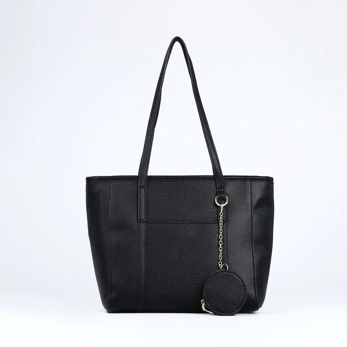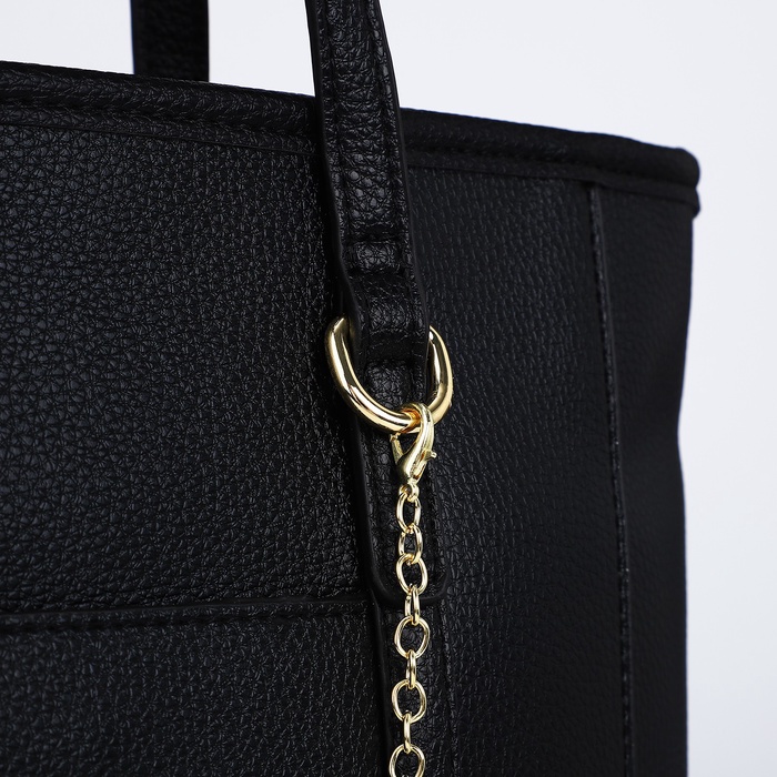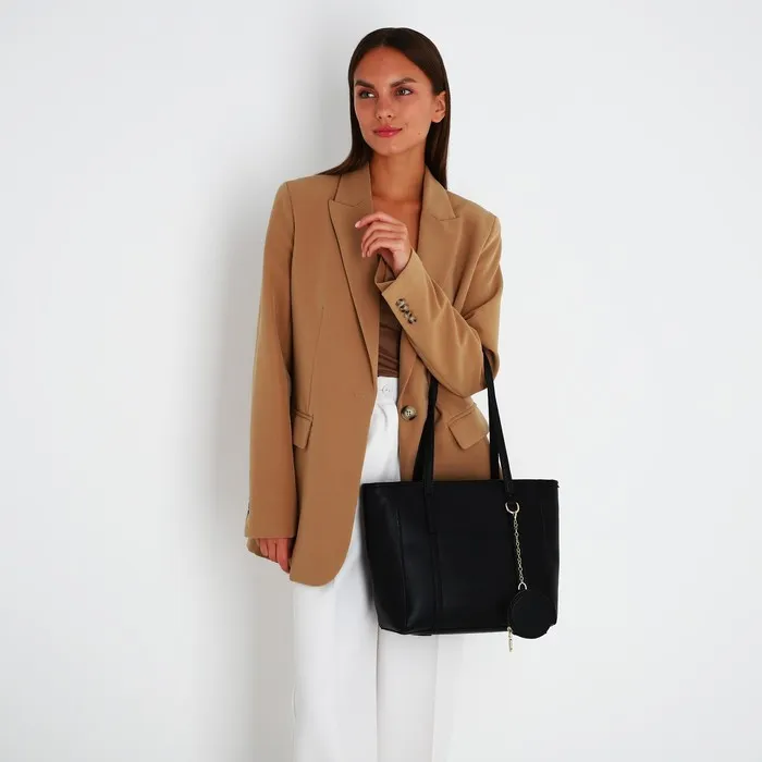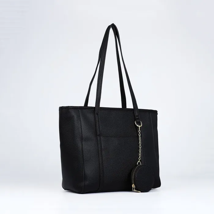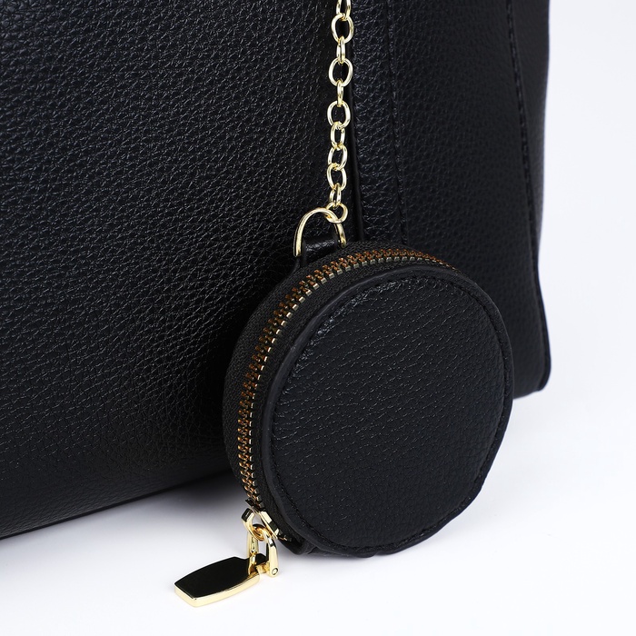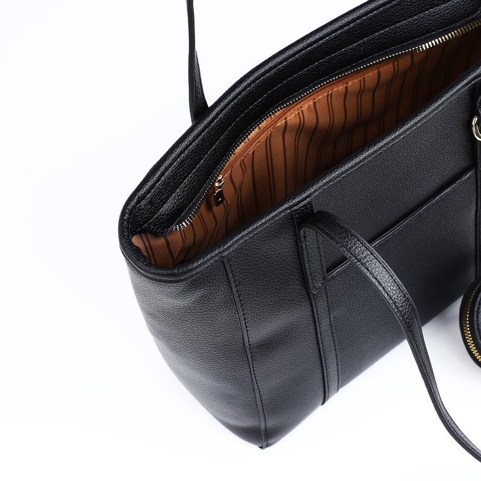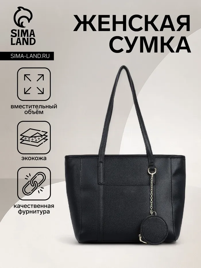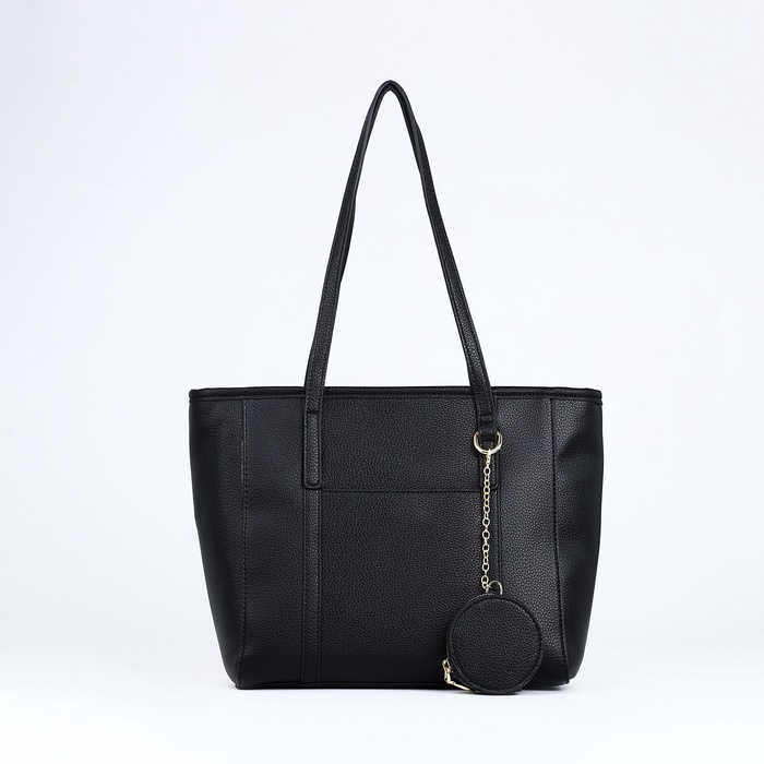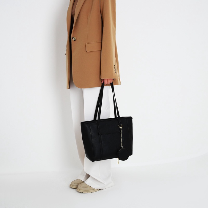 Сумка-шопер женская на молнии, с монетницей, размер 28×14×26 см, чёрная — Характеристики