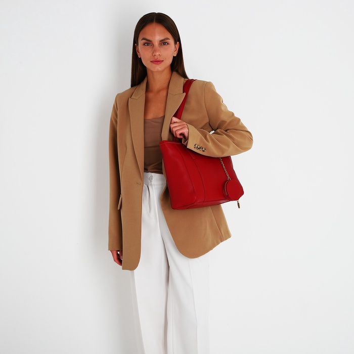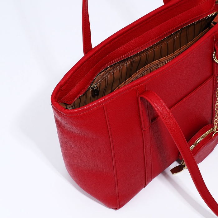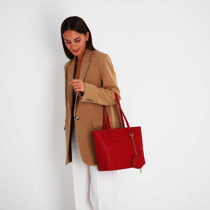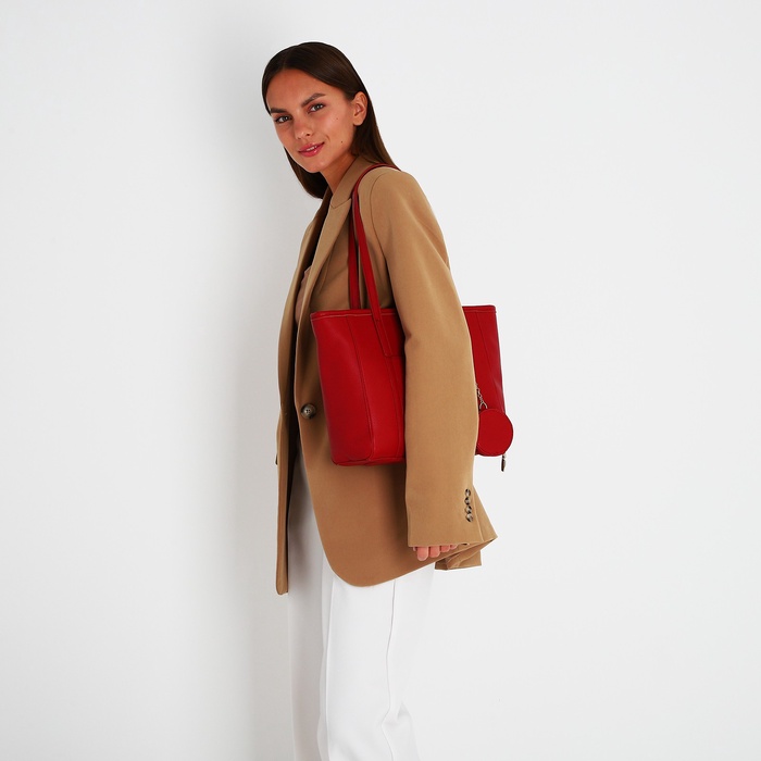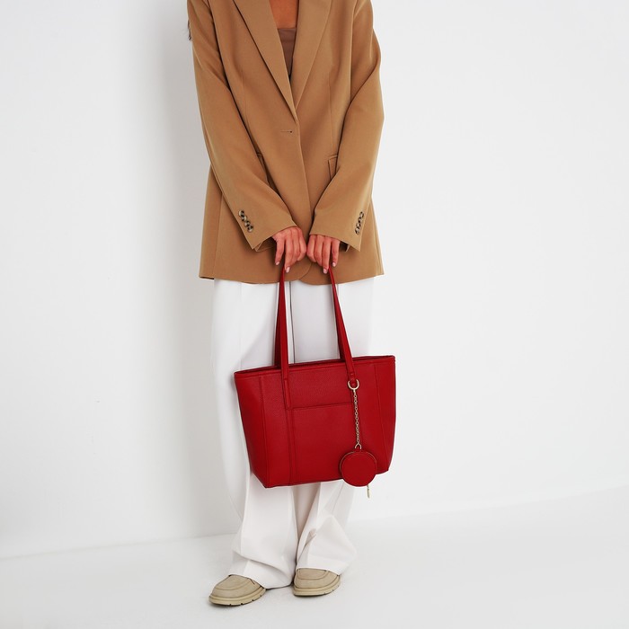 Сумка-шопер женская на молнии, с монетницей, размер 28×14×26 см, красная — Характеристики