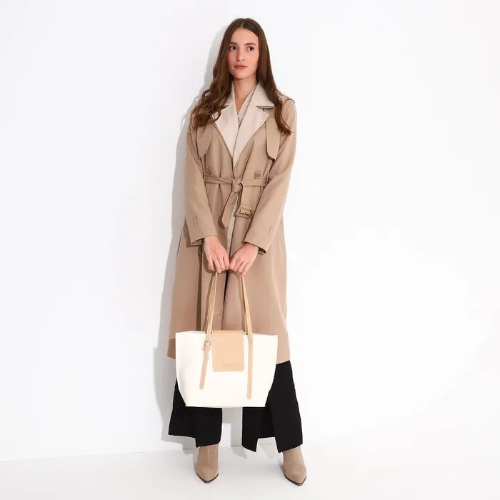 Эта просторная сумка-шопер создана для повседневного использования и комфортного ношения. Её универсальный бежевый оттенок легко сочетается с разными стилями одежды — от повседневного до делавого. Мягкая конструкция из качественного материала удобно адаптируется под содержимое, сохраняя элегантность силуэта.