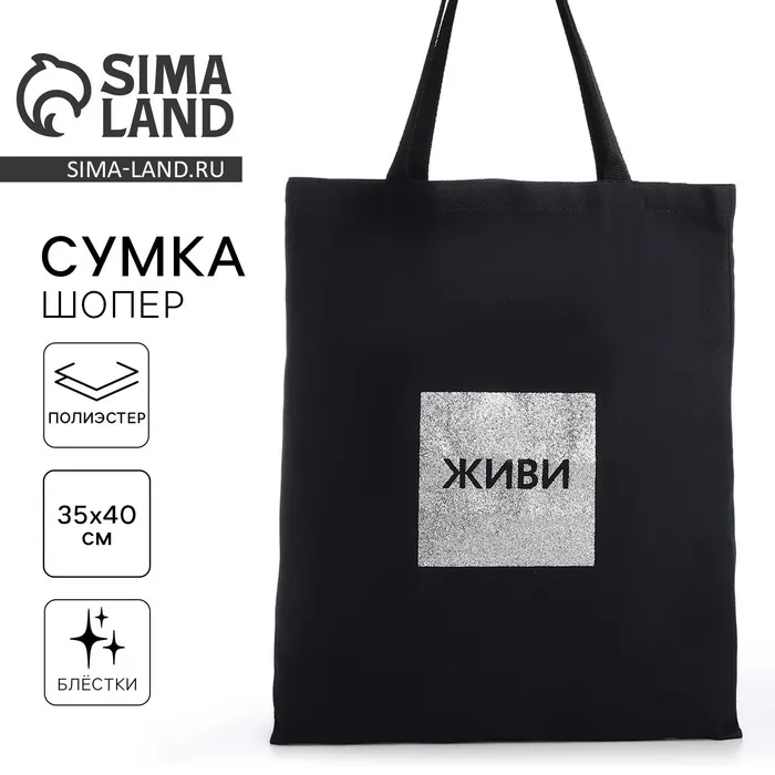 Сумка шопер «Живи», 35×0.5×40, без подклада, чёрный — Характеристики