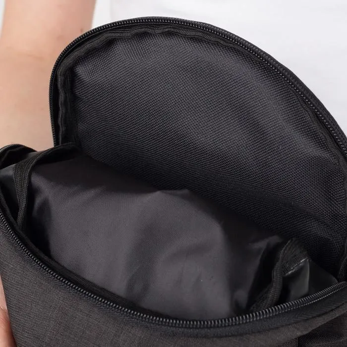 Эта черная сумка-слинг сочетает минималистичный стиль с практичностью для активного образа жизни. Однотонная текстильная модель подходит женщинам и мужчинам, сохраняя вещи организованными во время прогулок или поездок. Мягкая спинка и регулируемая лямка обеспечивают комфорт при переноске через плечо.