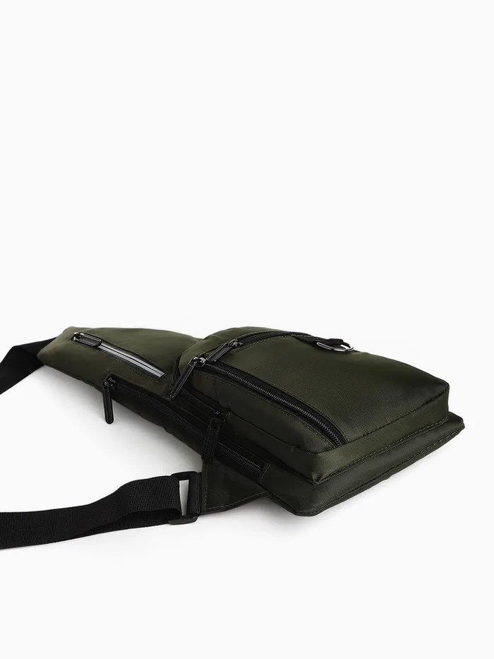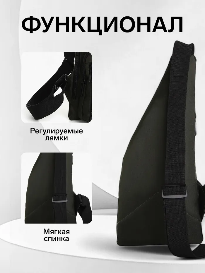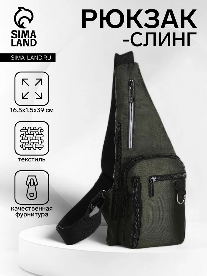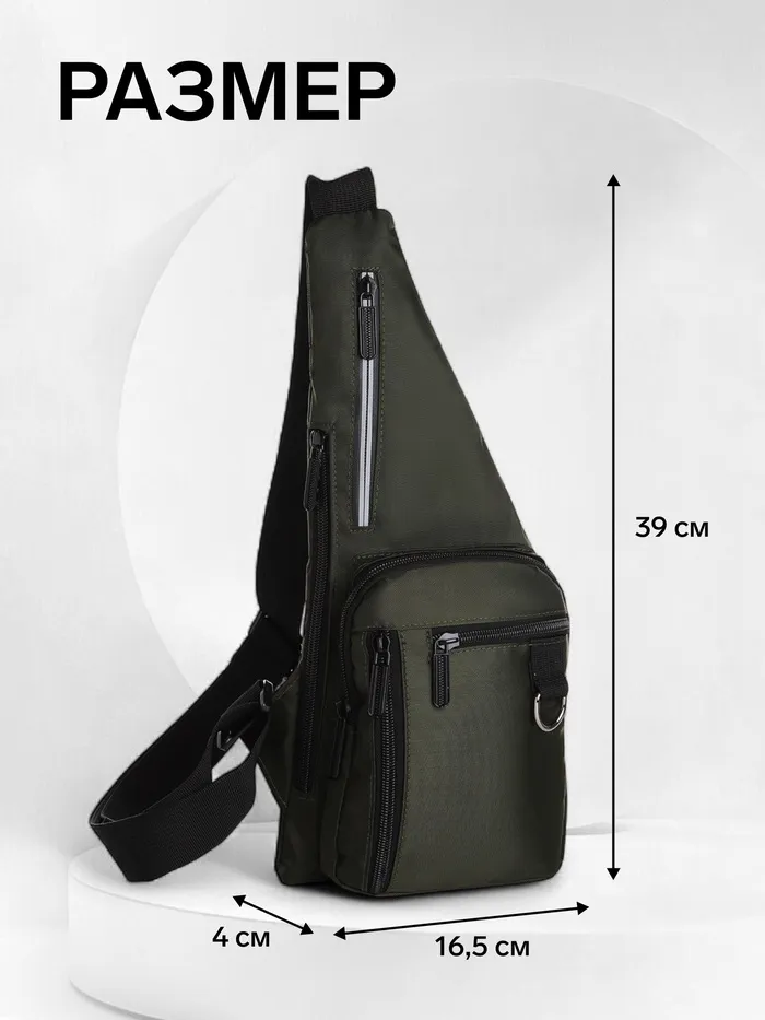 Сумка-слинг мужская на молнии, 4 наружных кармана, хаки — Характеристики