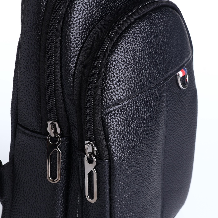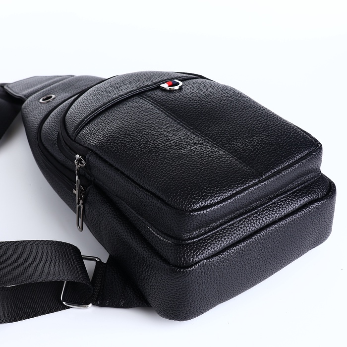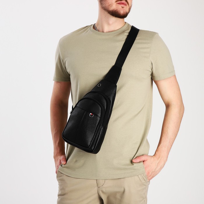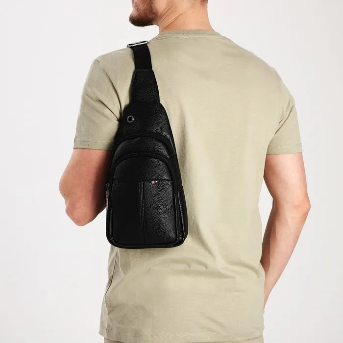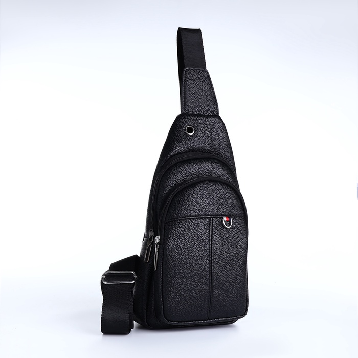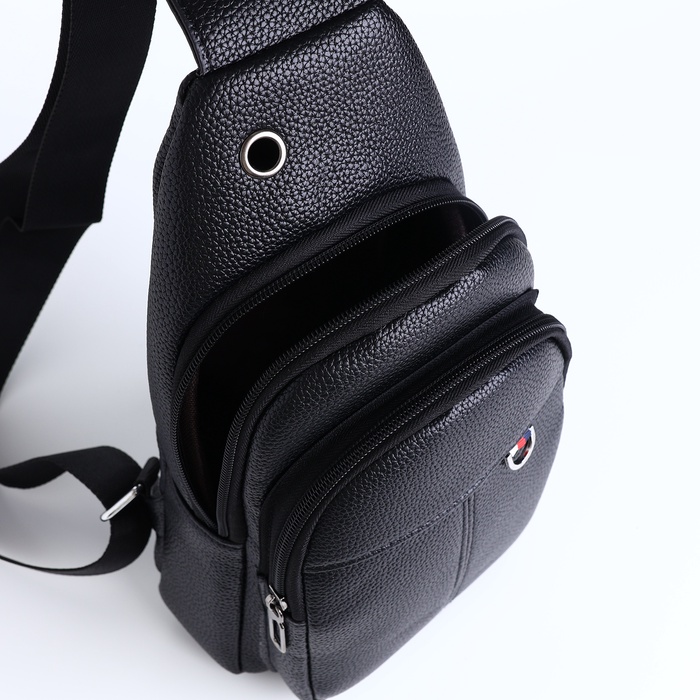Сумка-слинг мужская на молнии, наружный карман, отверстие для наушников, чёрная — Характеристики