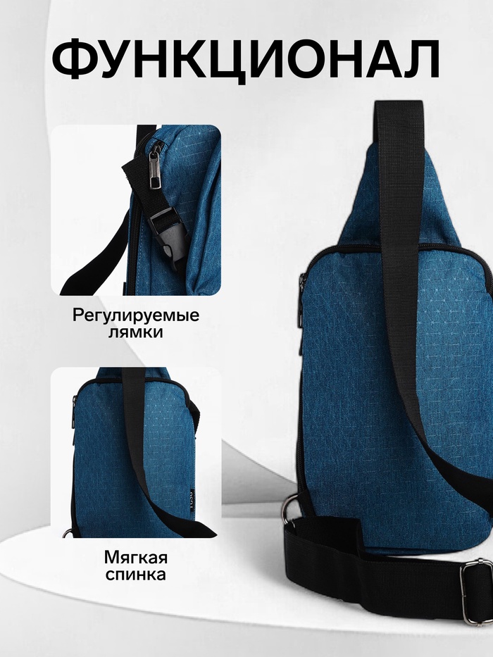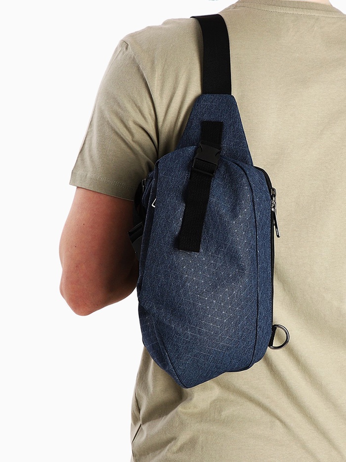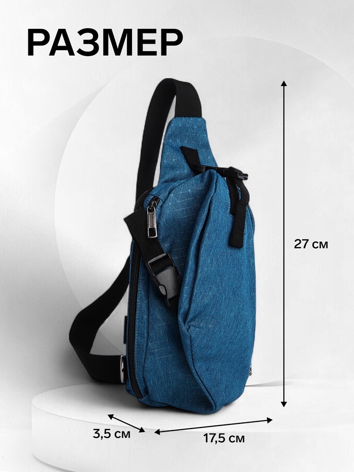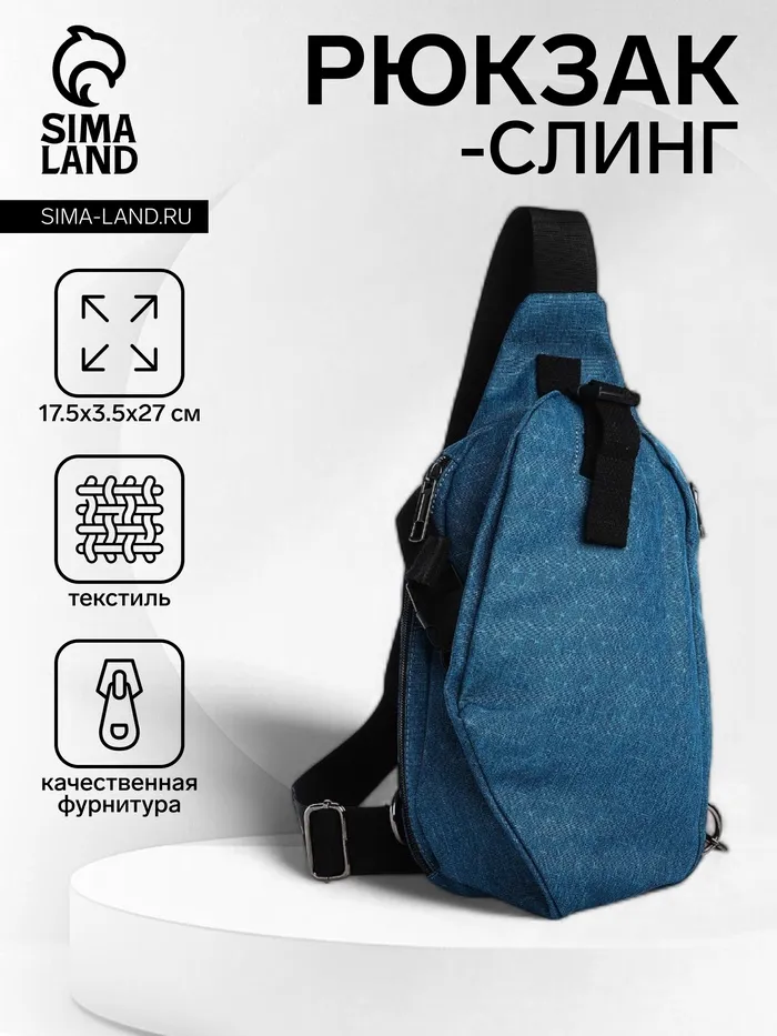 Сумка-слинг на молнии, 3 наружных кармана, синяя — Характеристики