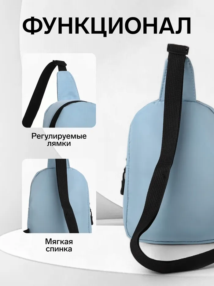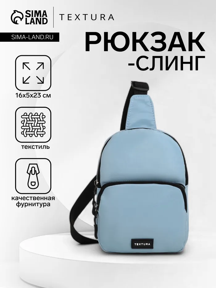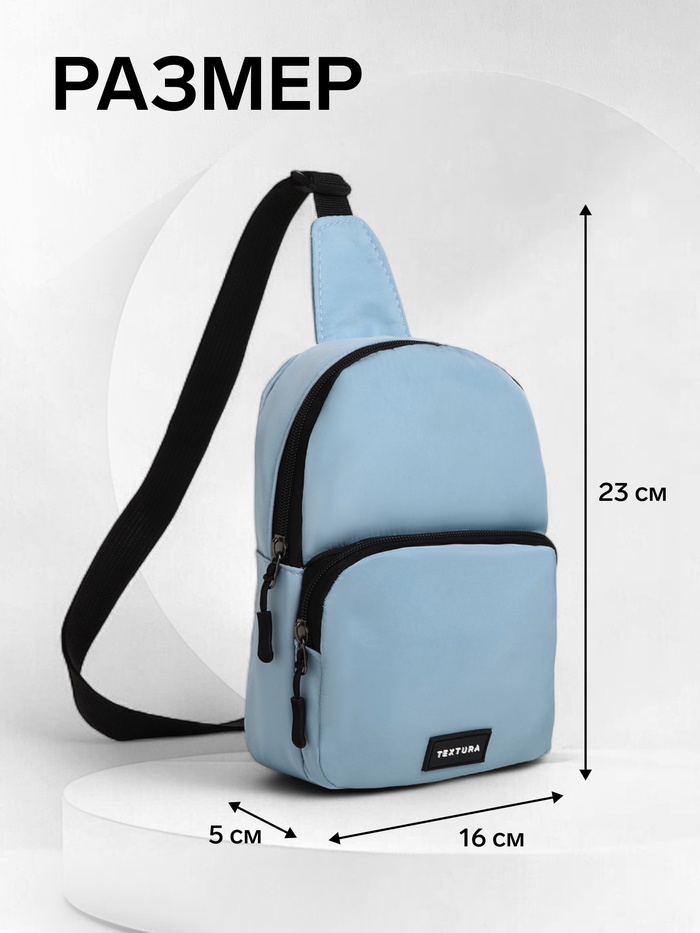 Сумка-слинг на молнии TEXTURA, наружный карман, цвет голубой — Характеристики
