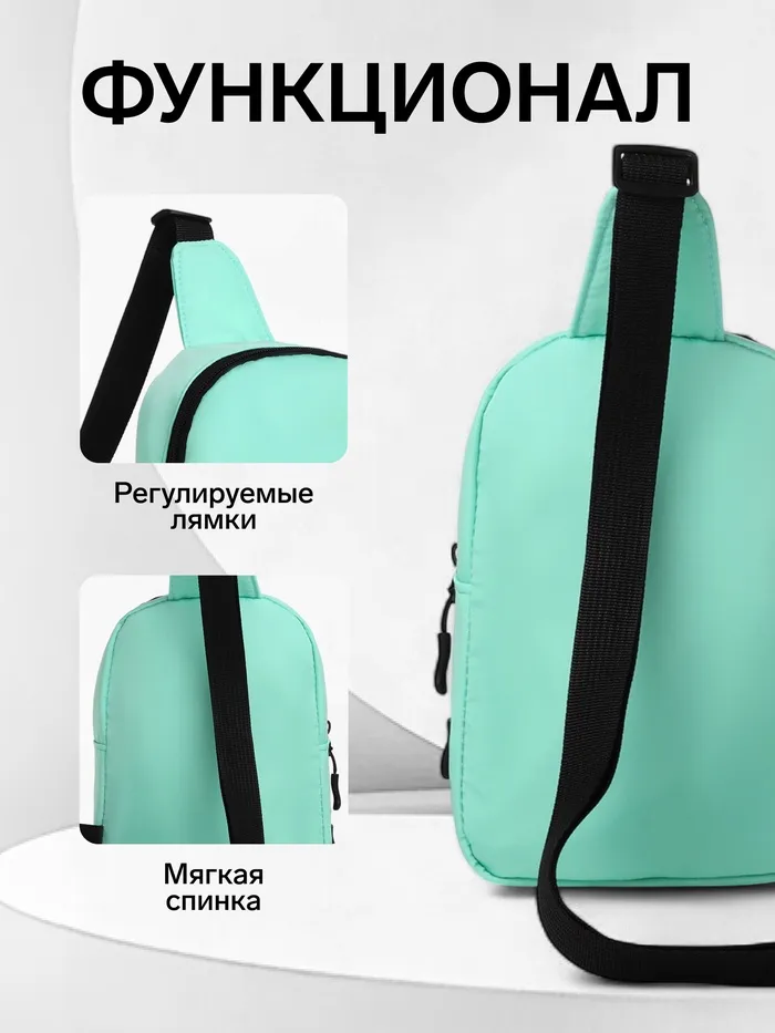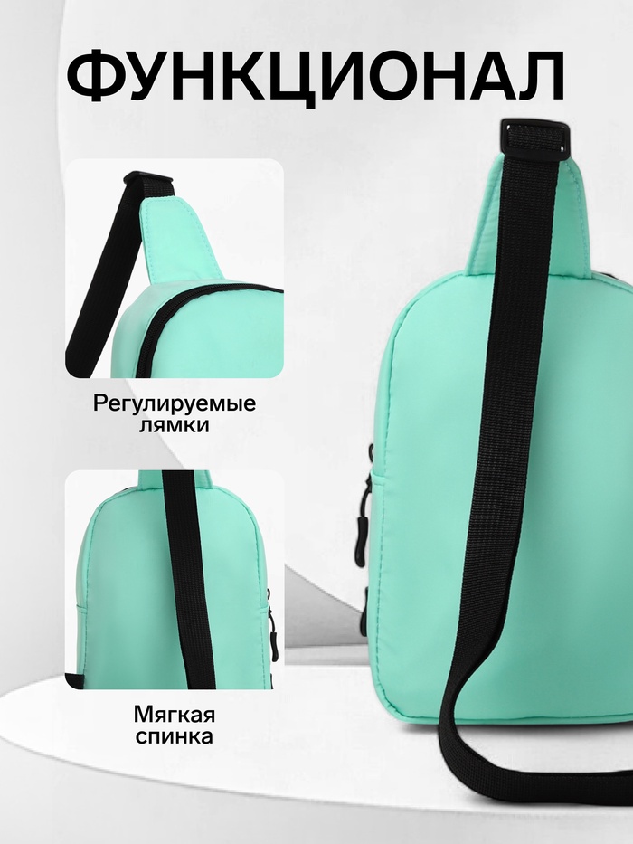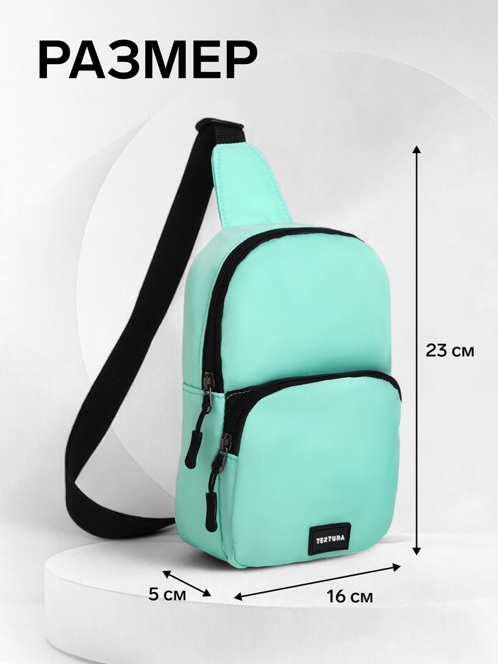 Сумка-слинг на молнии TEXTURA, наружный карман, цвет мятный — Характеристики