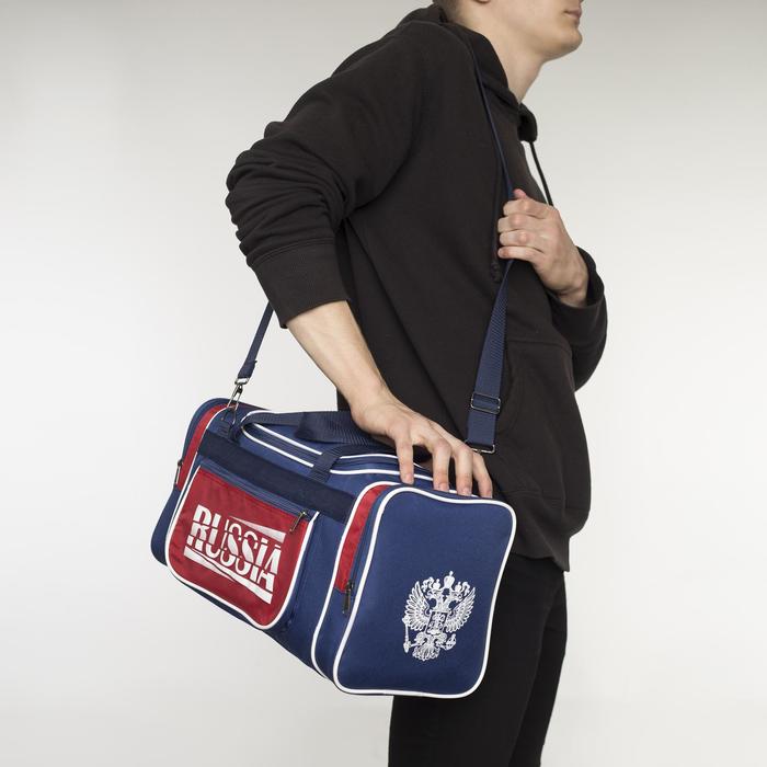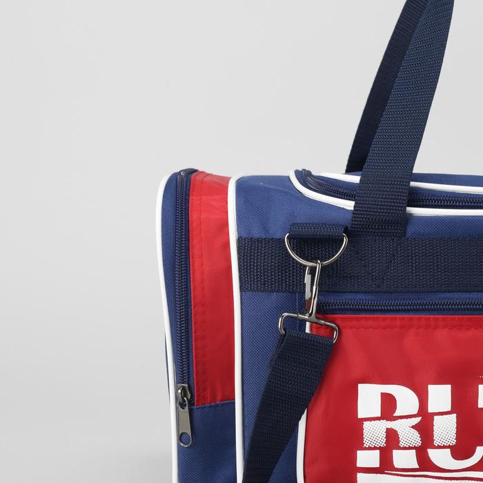 Сумка спортивная, 3 отдела на молниях, наружный карман, длинный ремень, средний размер, цвет синий/красный — Характеристики