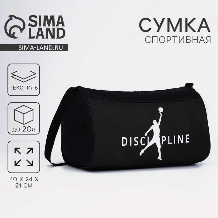 Сумка спортивная Discipline, наружный карман, 40×21×24 см, чёрная — Характеристики