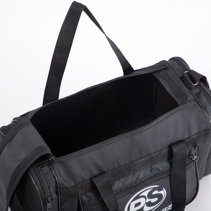 Сумка спортивная мужская на молнии, 3 наружных кармана, средний размер, цвет чёрный — Характеристики