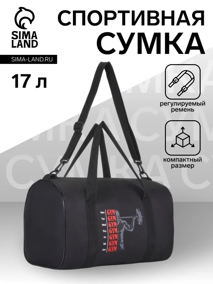 Сумка спортивная мужская, TEXTURA, маленький размер, цвет чёрный — Характеристики