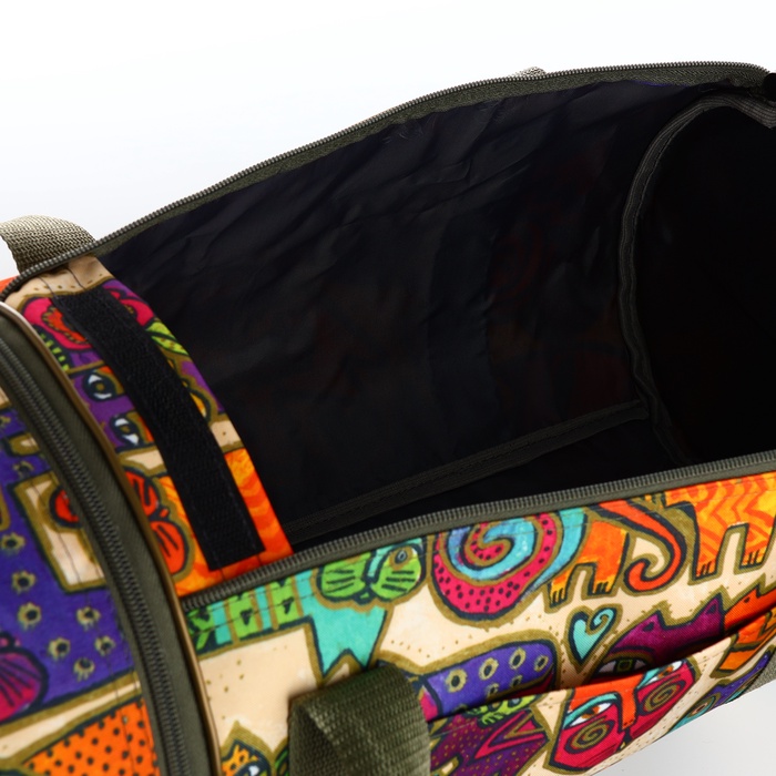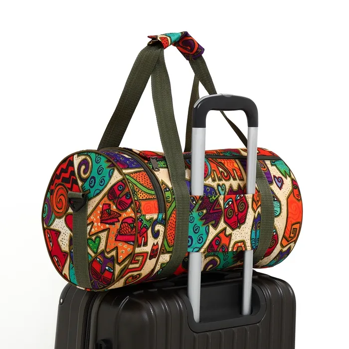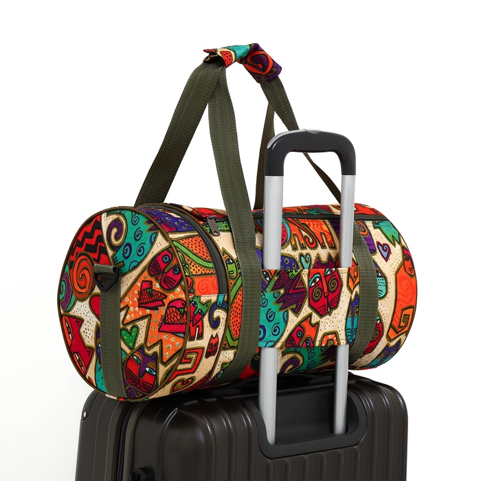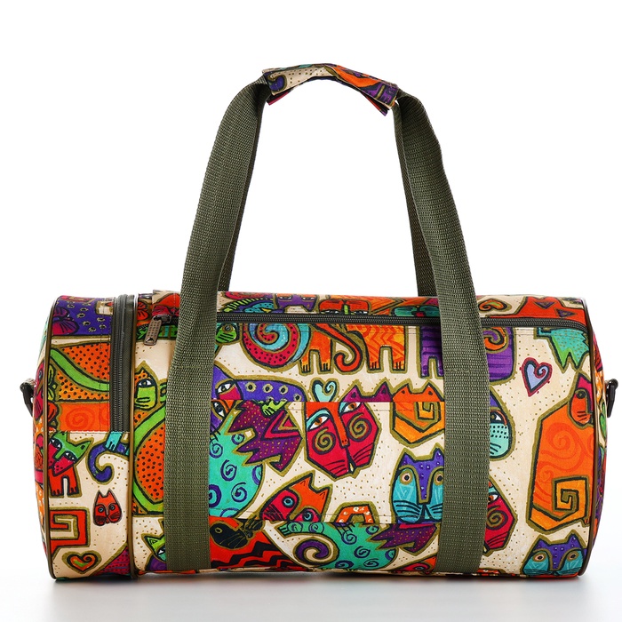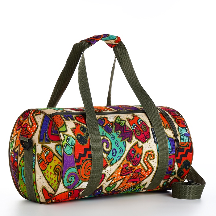 Сумка спортивная на молнии, 2 наружных кармана, длинный ремень, цвет бежевый/разноцветный — Характеристики