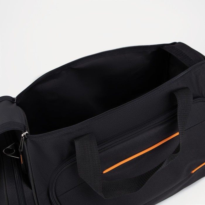 Сумка спортивная на молнии, 3 наружных кармана, длинный ремень, большой размер, цвет чёрный — Характеристики