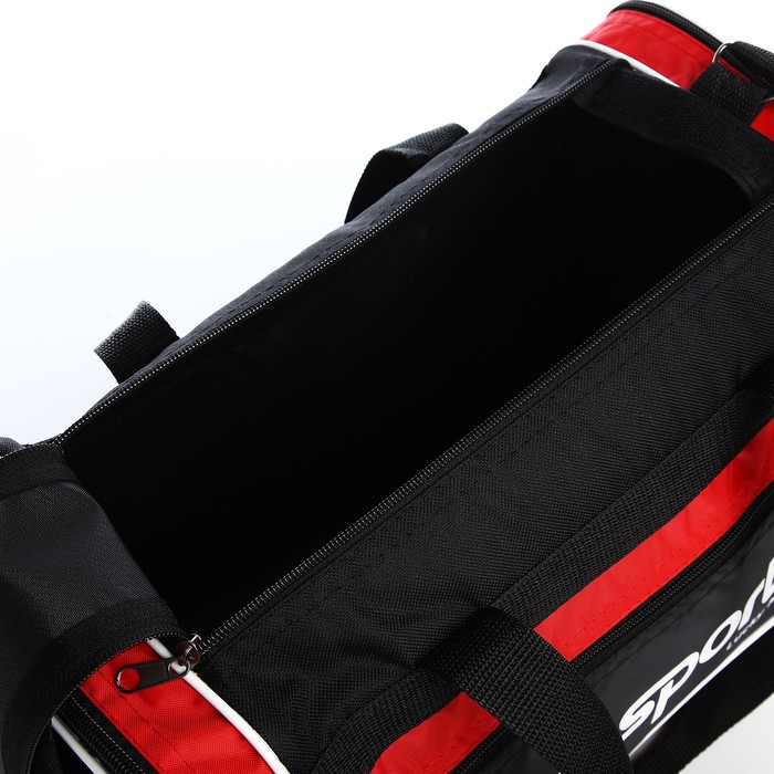 Сумка спортивная на молнии, 3 наружных кармана, длинный ремень, средний размер, чёрная, красная — Характеристики