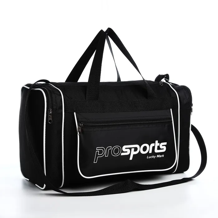 Сумка спортивная на молнии, 3 наружных кармана, длинный ремень, средний размер, цвет чёрный — Характеристики