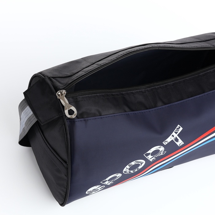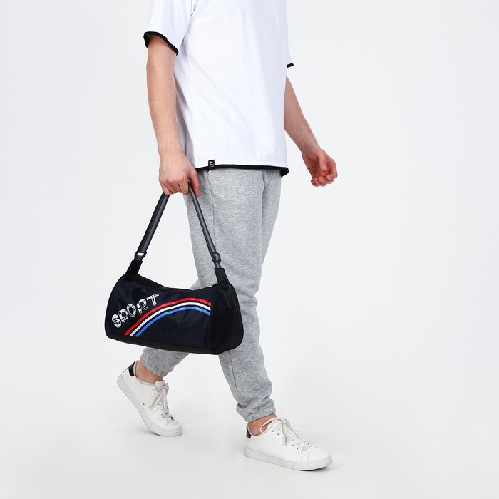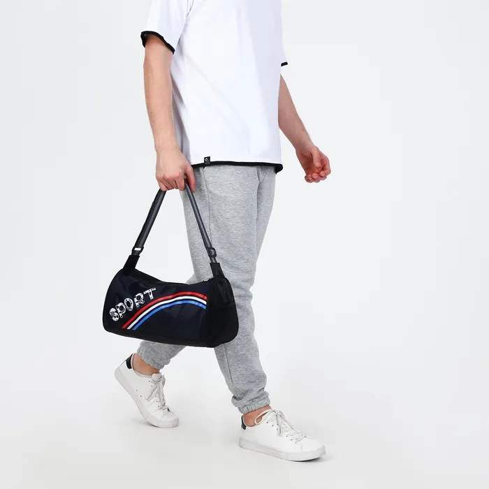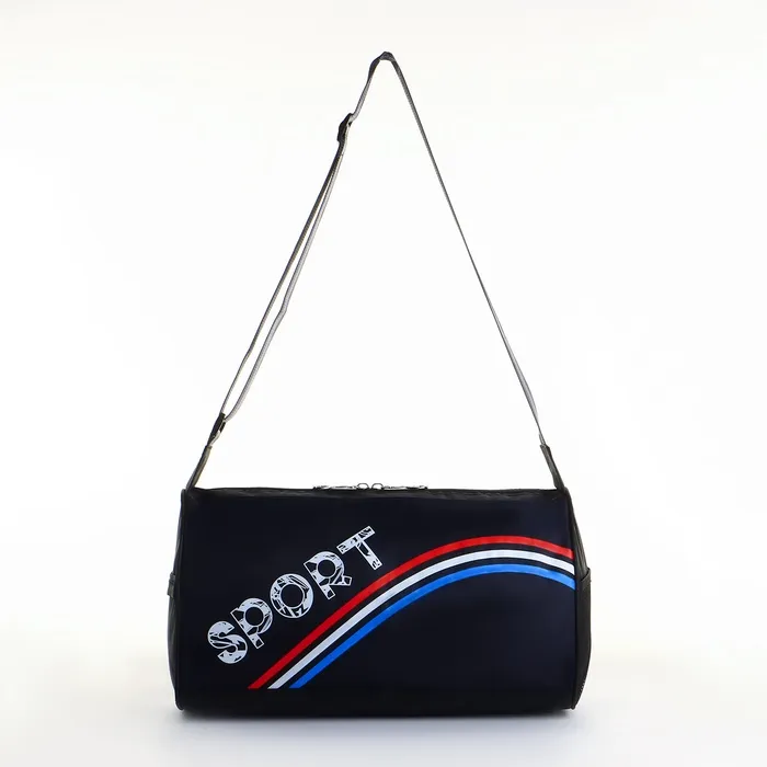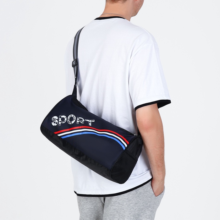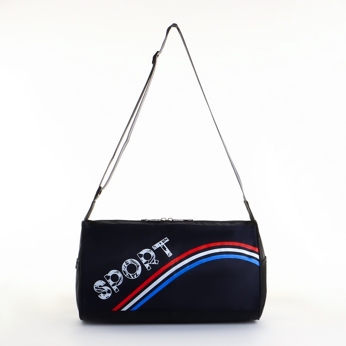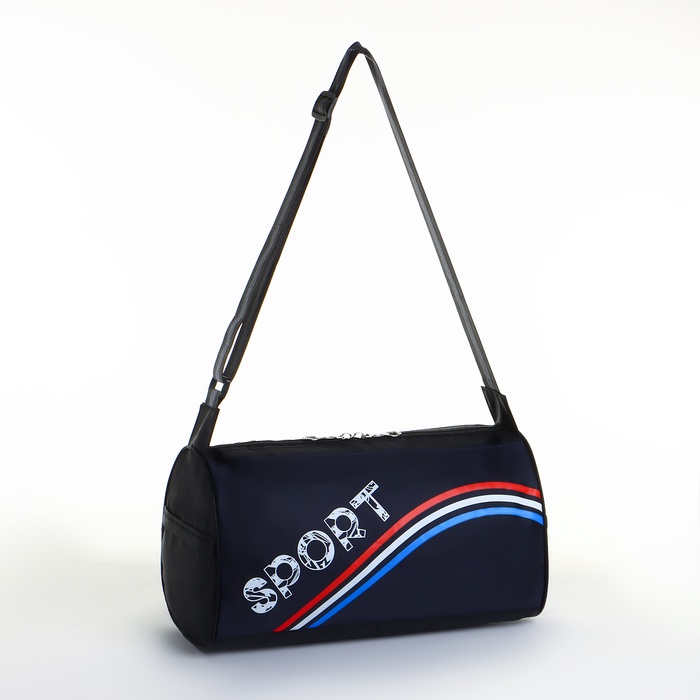 Сумка спортивная на молнии, боковой карман/сетка, регулируемый ремень, маленький размер, цвет чёрный/синий/триколор — Характеристики
