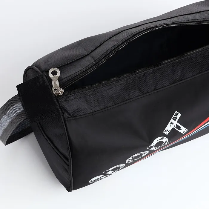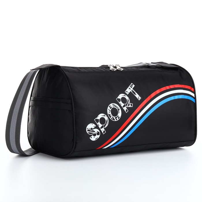 Сумка спортивная на молнии, боковой карман/сетка, регулируемый ремень, маленький размер, цвет чёрный/триколор — Характеристики