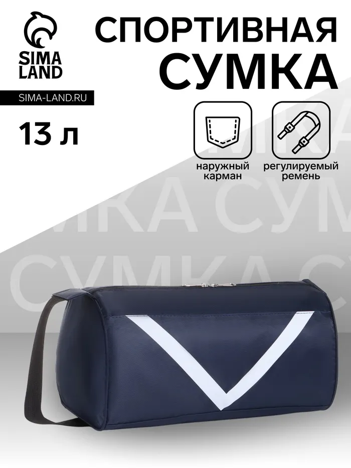 Сумка спортивная на молнии, боковой карман/сетка, регулируемый ремень, маленький размер, цвет синий — Характеристики