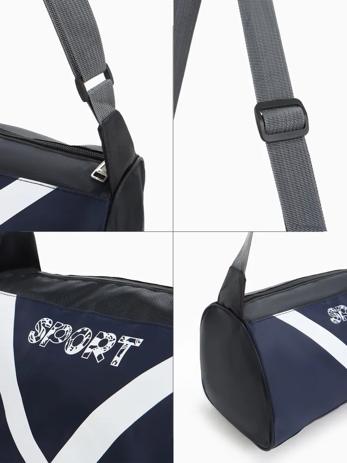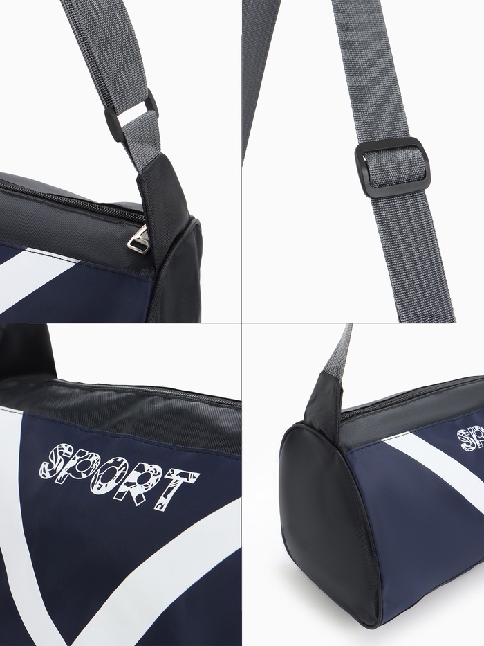 Сумка спортивная на молнии, боковой карман/сетка, регулируемый ремень, маленький размер, цвет тёмно-синий — Характеристики