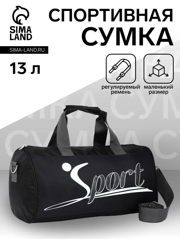 Сумка спортивная на молнии, длинный ремень, маленький размер, цвет чёрный — Характеристики