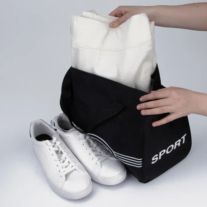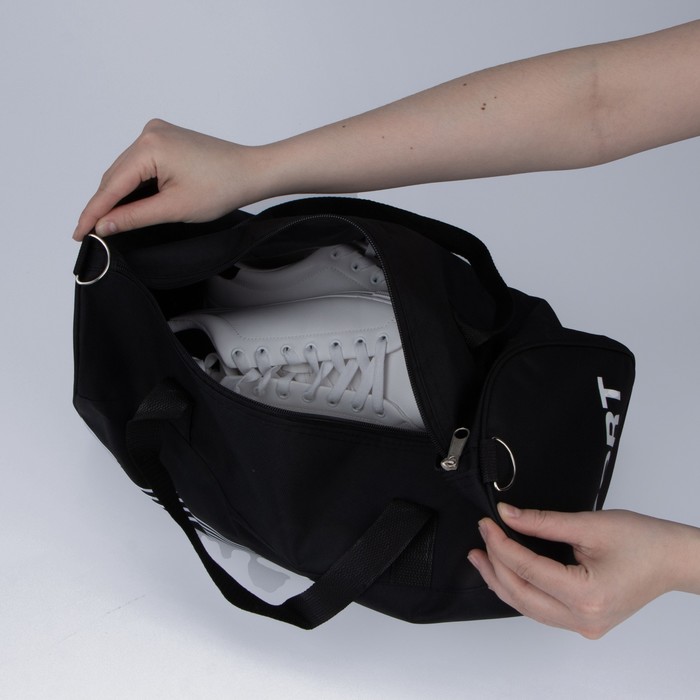 Сумка спортивная на молнии, длинный ремень, средний размер, цвет чёрный — Характеристики