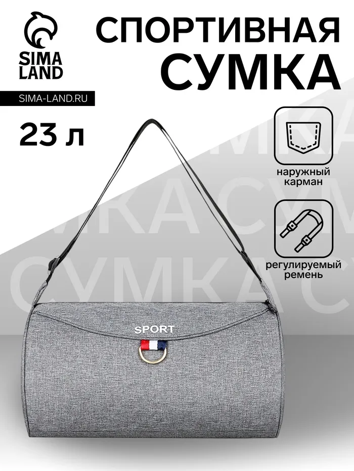 Сумка спортивная на молнии, наружный карман, регулируемый ремень, средний размер, цвет серый — Характеристики