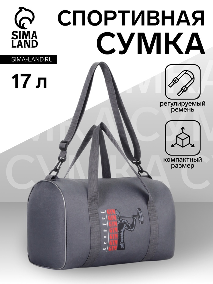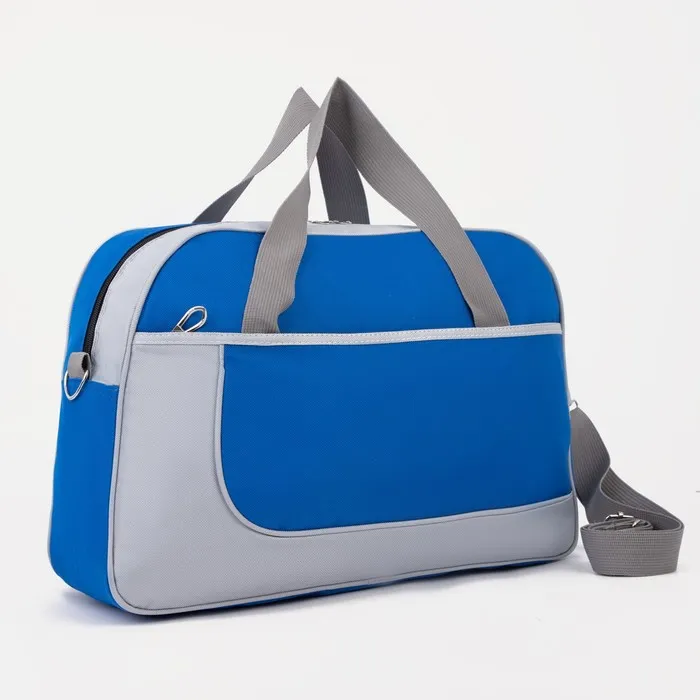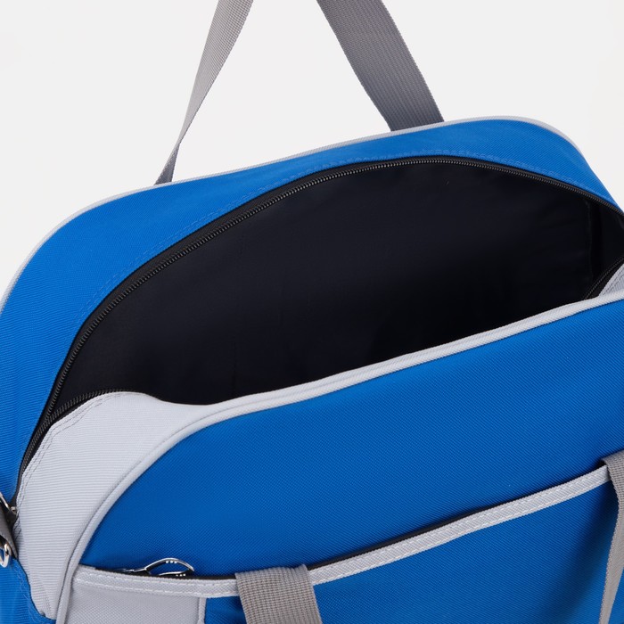 Сумка спортивная на молнии, наружный карман, средний размер, цвет серый/синий — Характеристики
